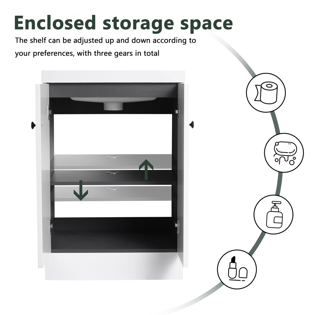 | Package includes | -1x Vanity Cabinet; -1x Resin Sink; -1x Adjustable Shelf; -3 Pairs Metal Handle; Parts Package |