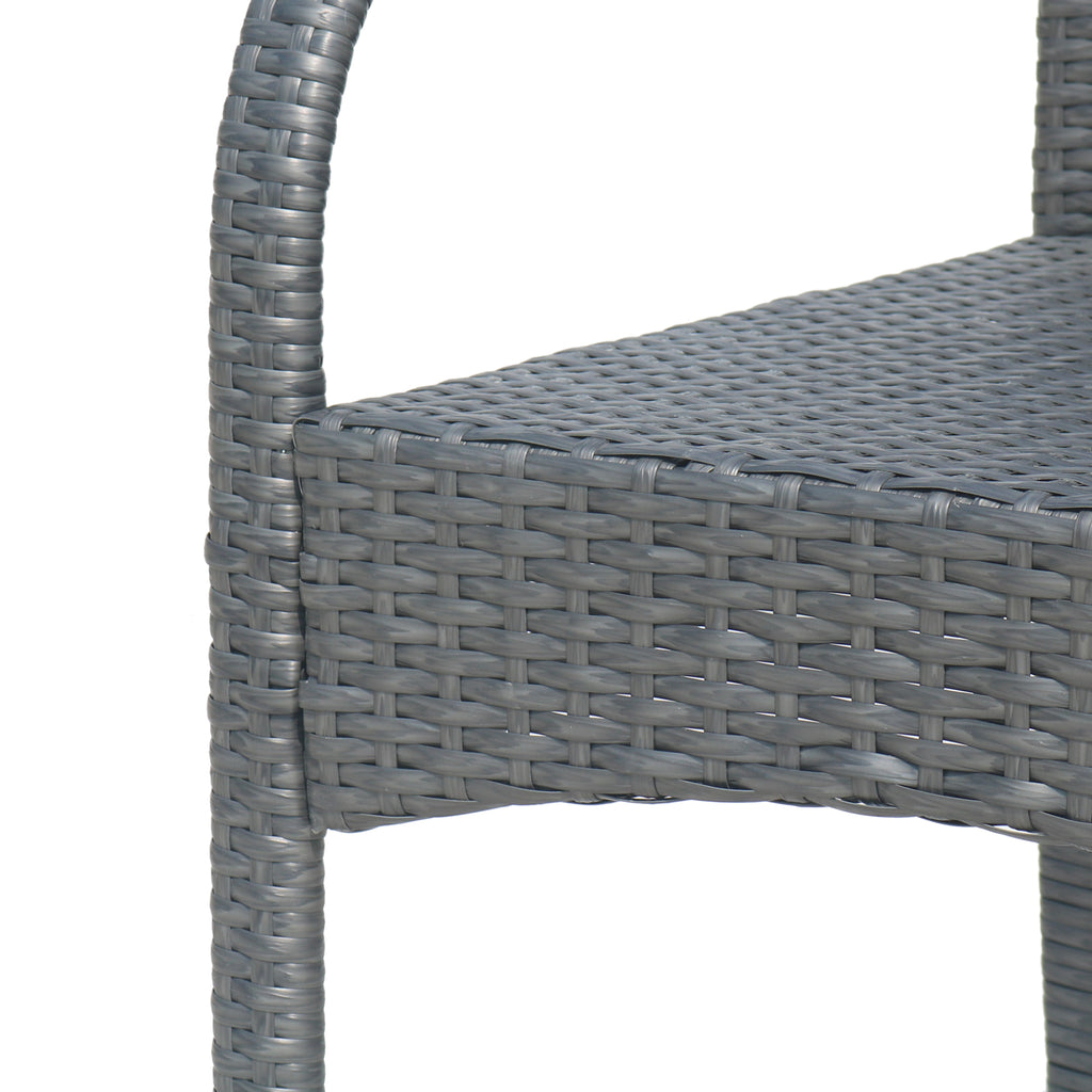 Create a cozy conversation spot in your outdoor living space with this set of two Cascada outdoor wicker bar stool height chairs by Christopher Knight Home. Sturdy, powder-coated metal framing and polyethylene rattan ensure incredible durability and longevity. Simple, clean lines coordinate easily with your contemporary outdoor decor. Includes: Two (2) Barstools Material: Faux Rattan Frame Material: Iron Rattan Finish: Gray/Multi-Brown Hand-Crafted Details Assembly Required Dimensions: 24.25 inches deep x 22.00 inches wide x 45.50 inches high Seat Dimensions: 18.00 inches deep x 18.50 inches wide x 30.00 inches high Arm Height: 38.00 inches Country of Origin: China