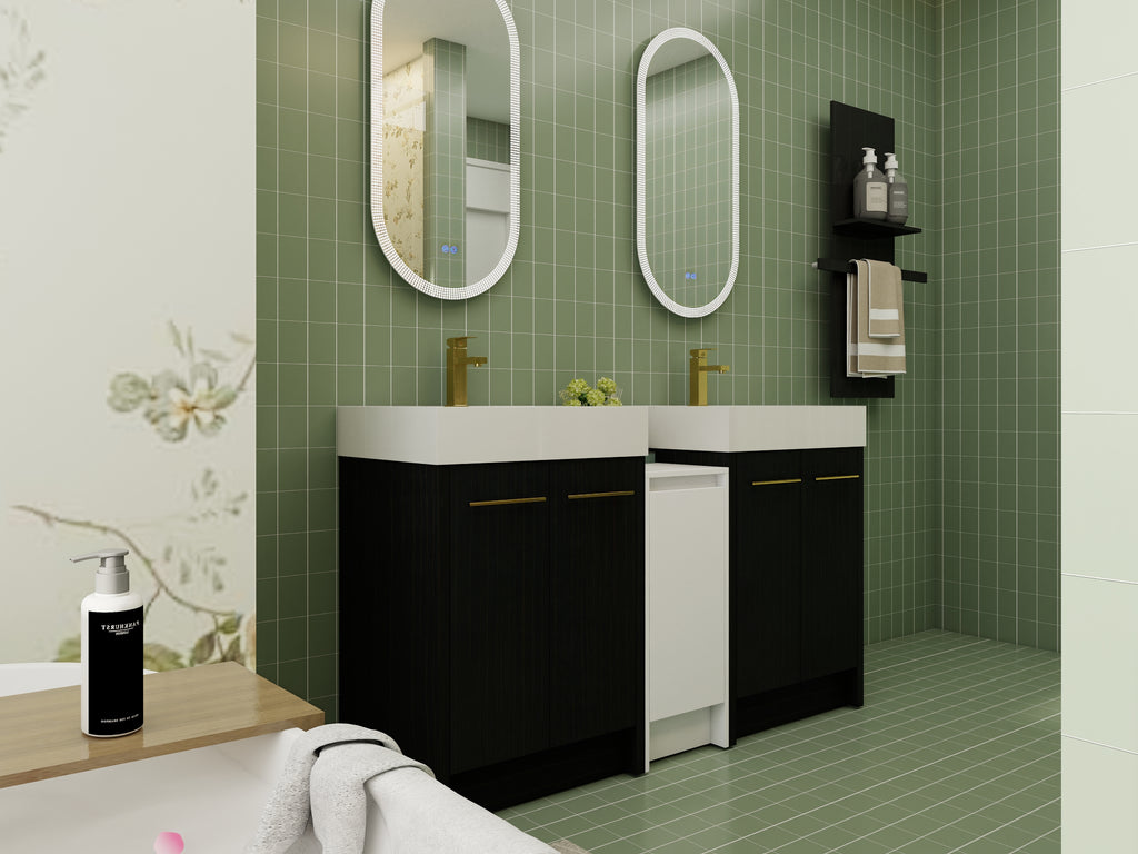 - Bring luxury to your bathroom with our contemporary bathroom vanity. Store all your essentials with ease in the ample bottom storage.