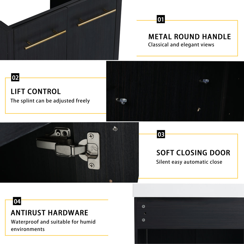 | Package includes | -2x Vanity Cabinet; -2x Resin Sink; -1x Storage Cabinets; -4x Metal Handle; Parts Package |