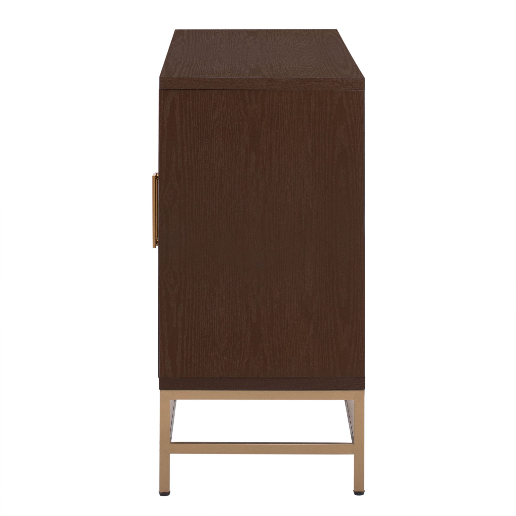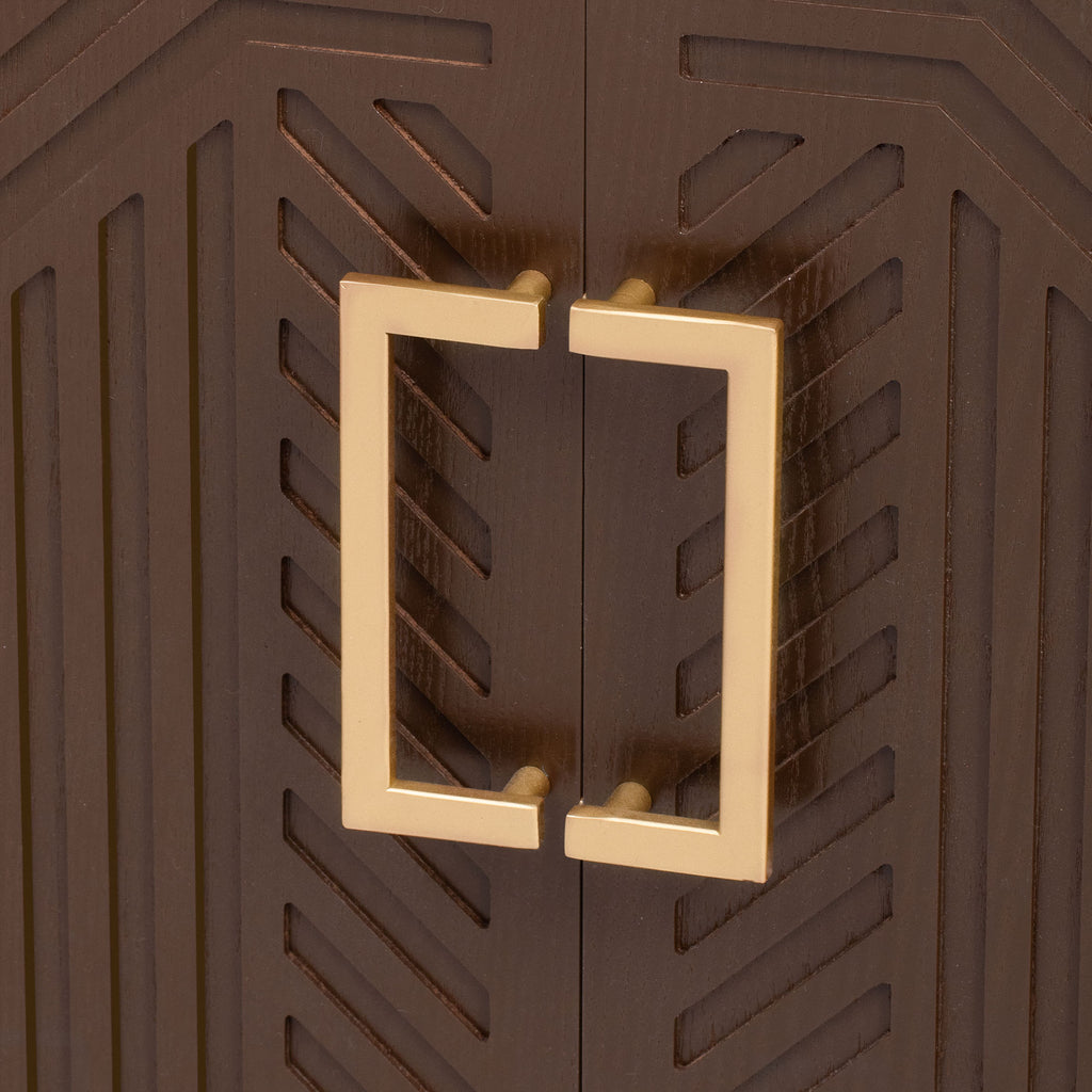 This retro-style sideboard uses a wooden cabinet with metal handles and legs, which is natural and beautiful. The surface of the cabinet uses staggered lines to outline a symmetrical pattern, giving people a calm and heavy feeling and presenting a retro aesthetic. It is definitely the best choice for retro decoration style.