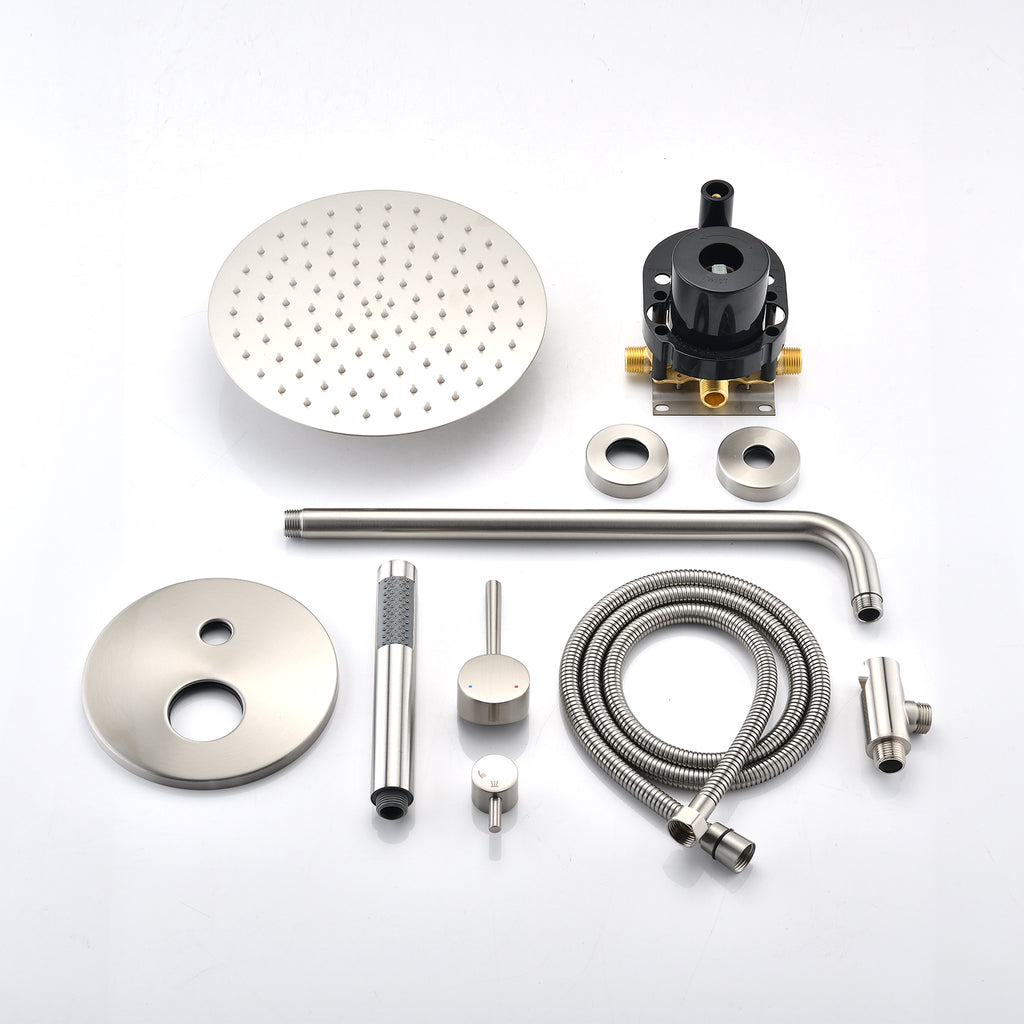 - 10 inches rain shower head and handheld shower head provide full body spray shower even under low water pressure area.
