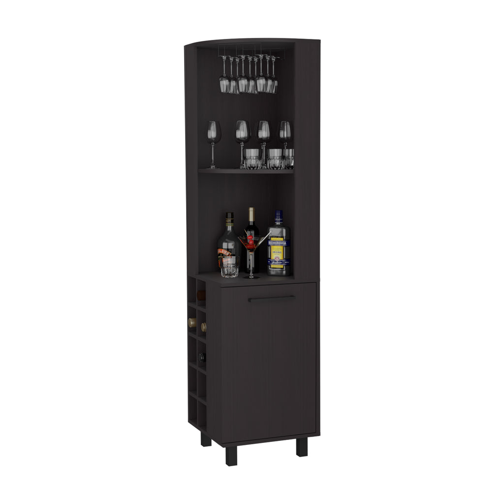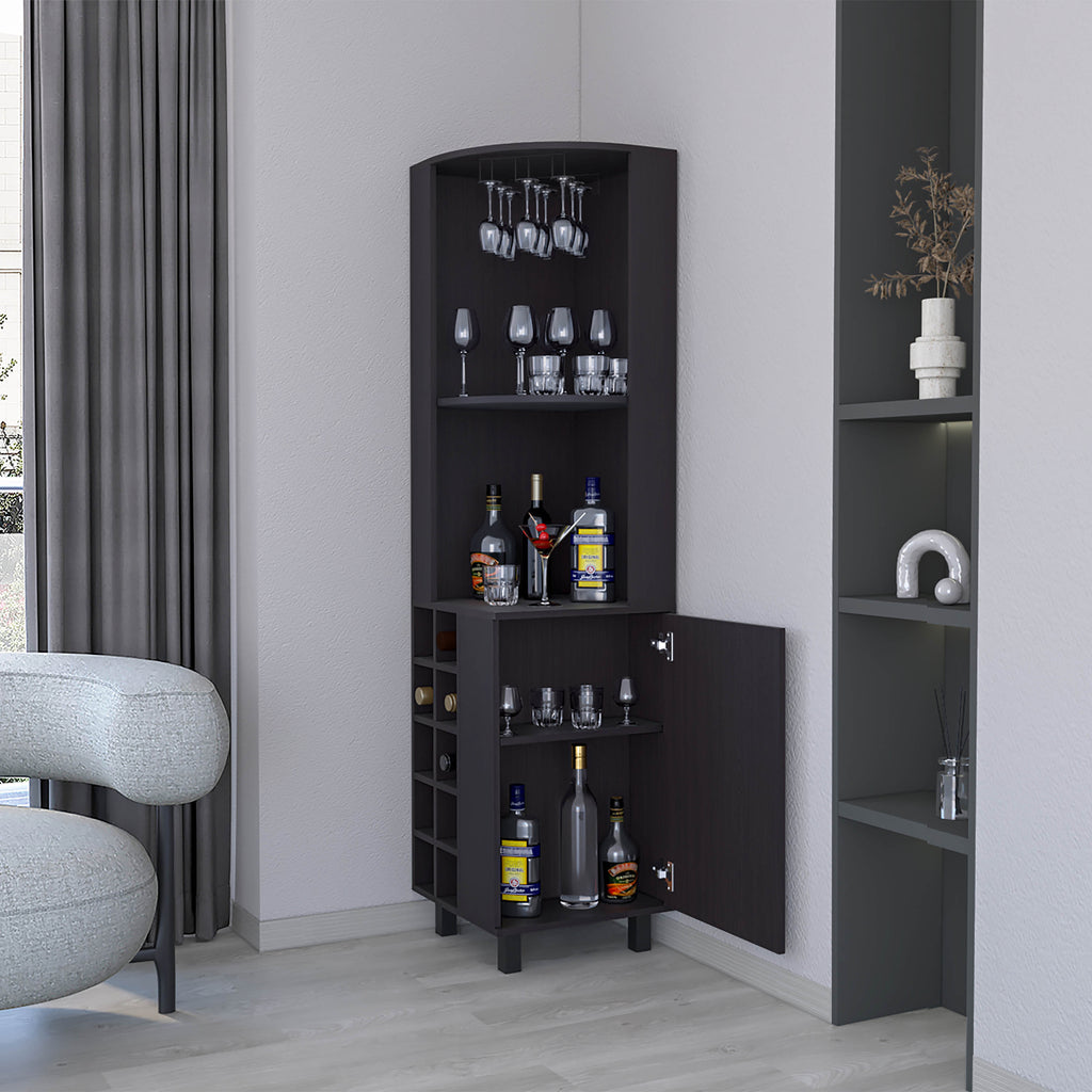 Leah corner Bar Cabinet in Melamine, Glass holder, Wine and wine Rack, Wengue