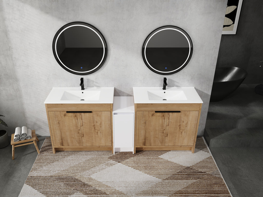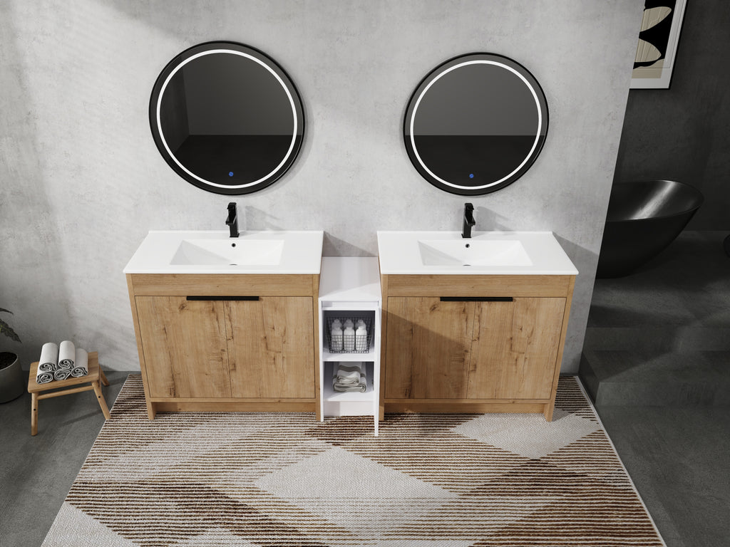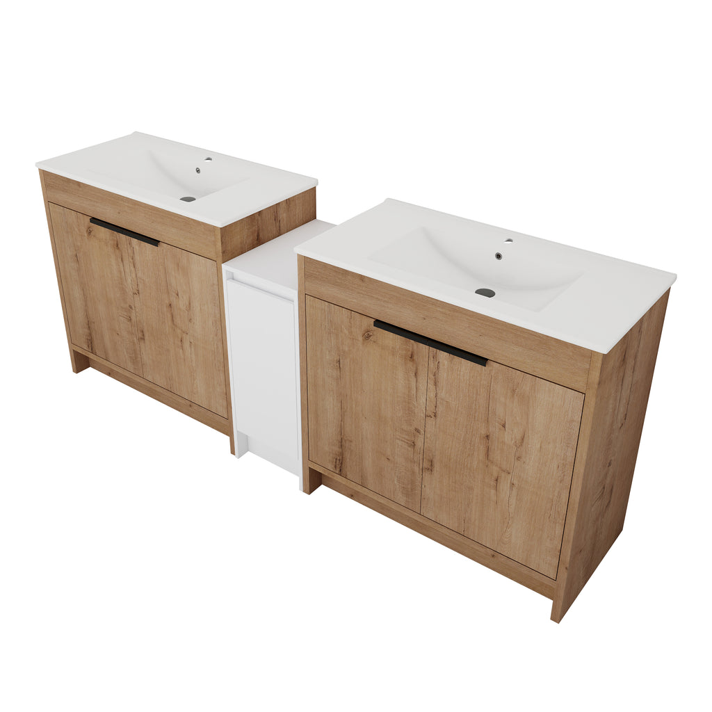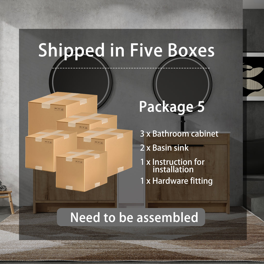 | Package includes | -2x Vanity Cabinet; -2x Ceramic Basin; -1x Storage Cabinets; -4x Metal Handle; Parts Package |