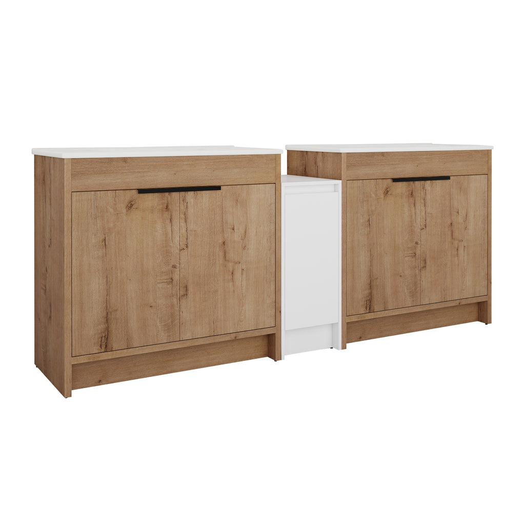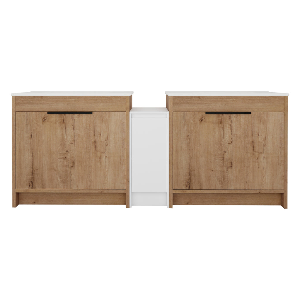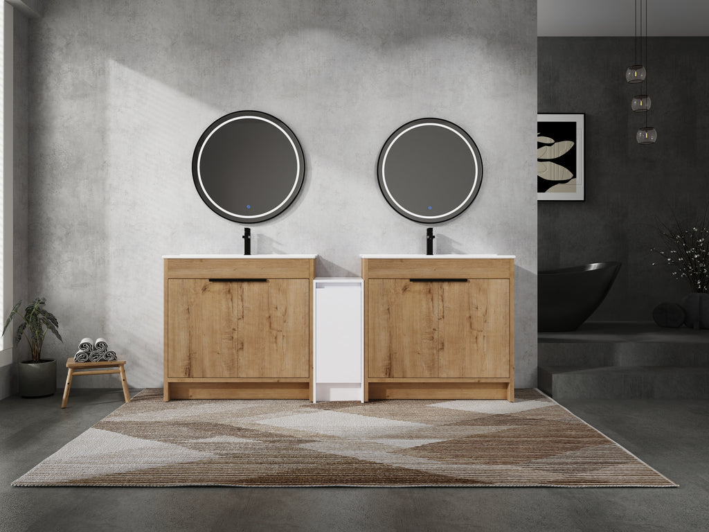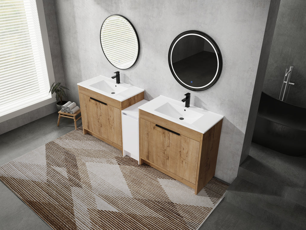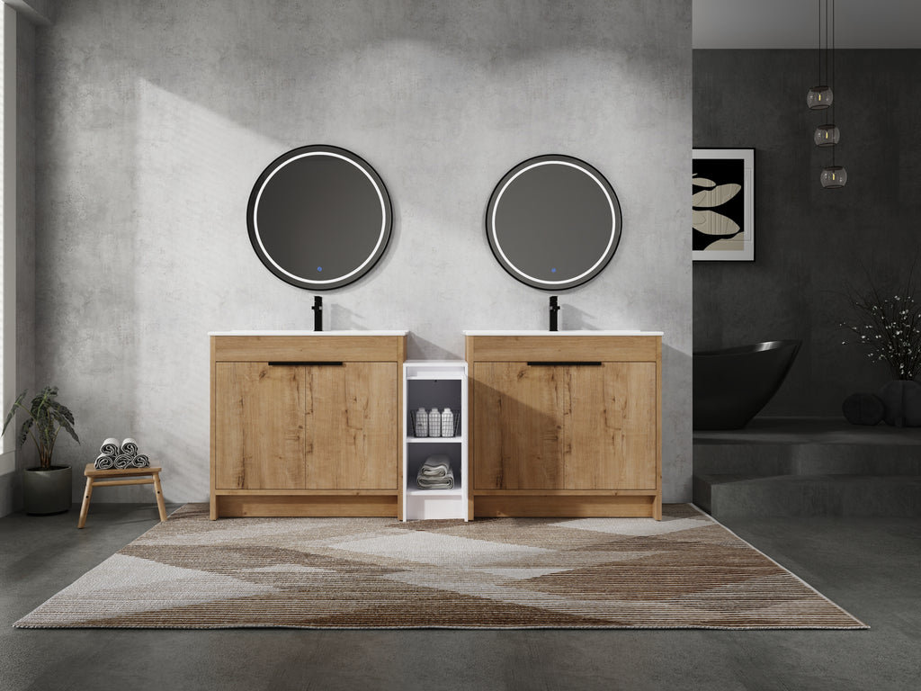 | Package includes | -2x Vanity Cabinet; -2x Ceramic Basin; -1x Storage Cabinets; -4x Metal Handle; Parts Package |