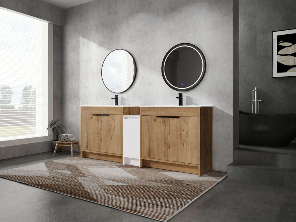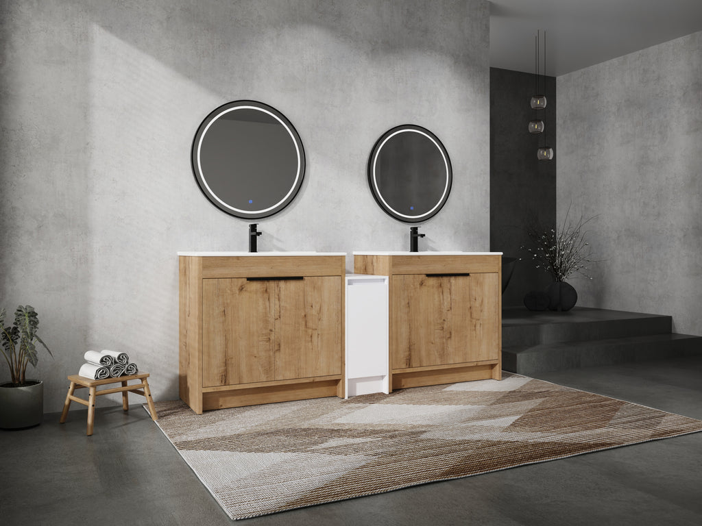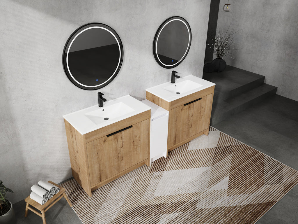 - Bring luxury to your bathroom with our contemporary bathroom vanity. Store all your essentials with ease in the ample bottom storage.