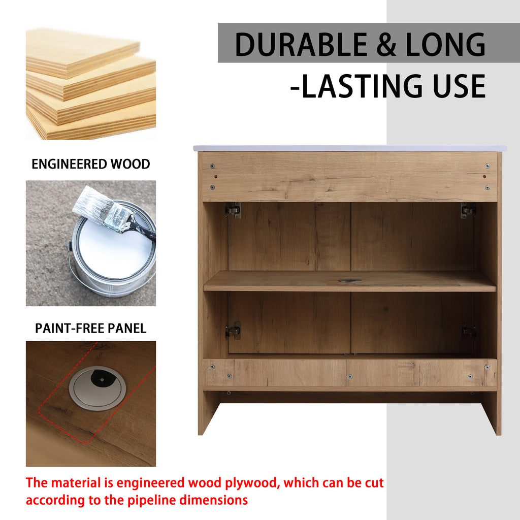 Vanity Base is made of high quality plywood that surface material used 'Scratch & Water-Resistant' melamine, which is designed to not only withstand threats of moisture and humidity but also easy to clean and maintain.