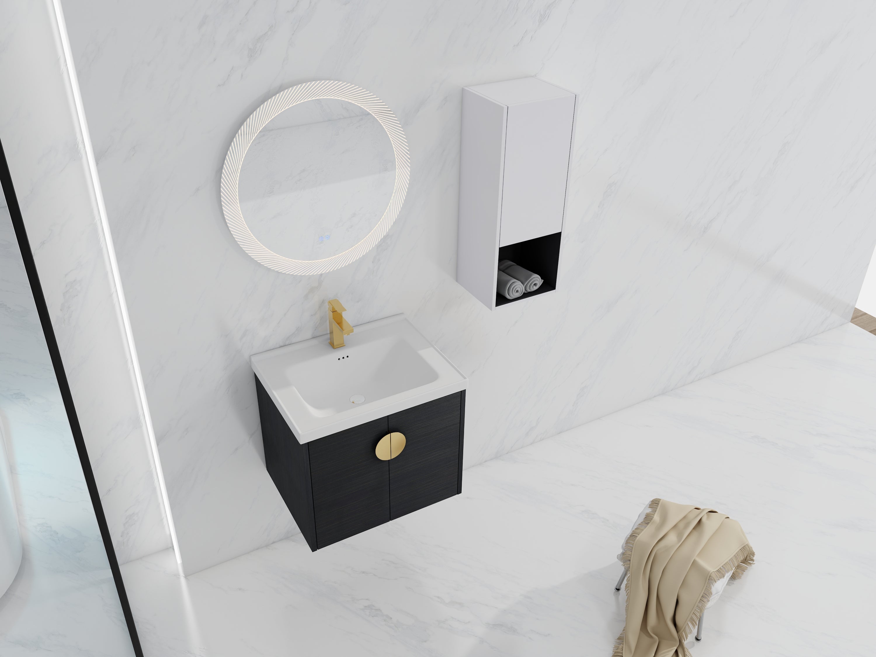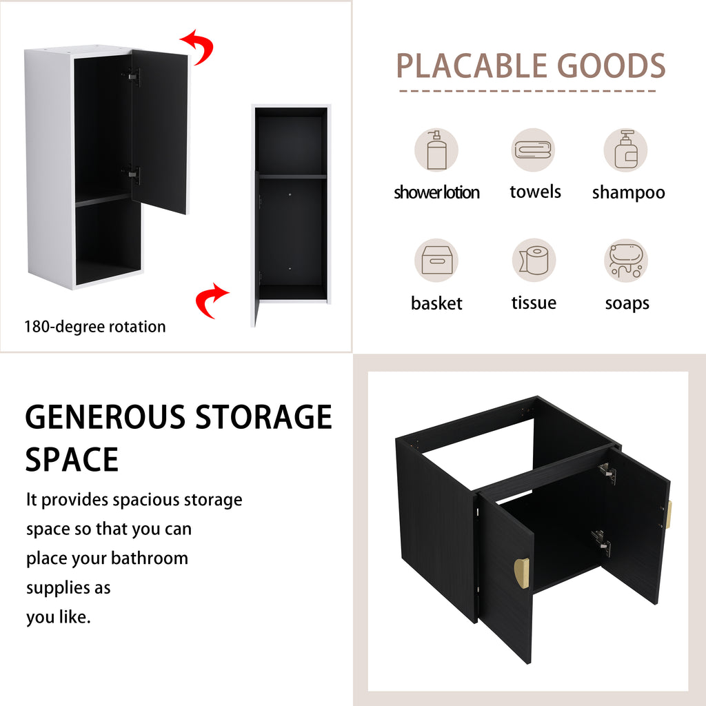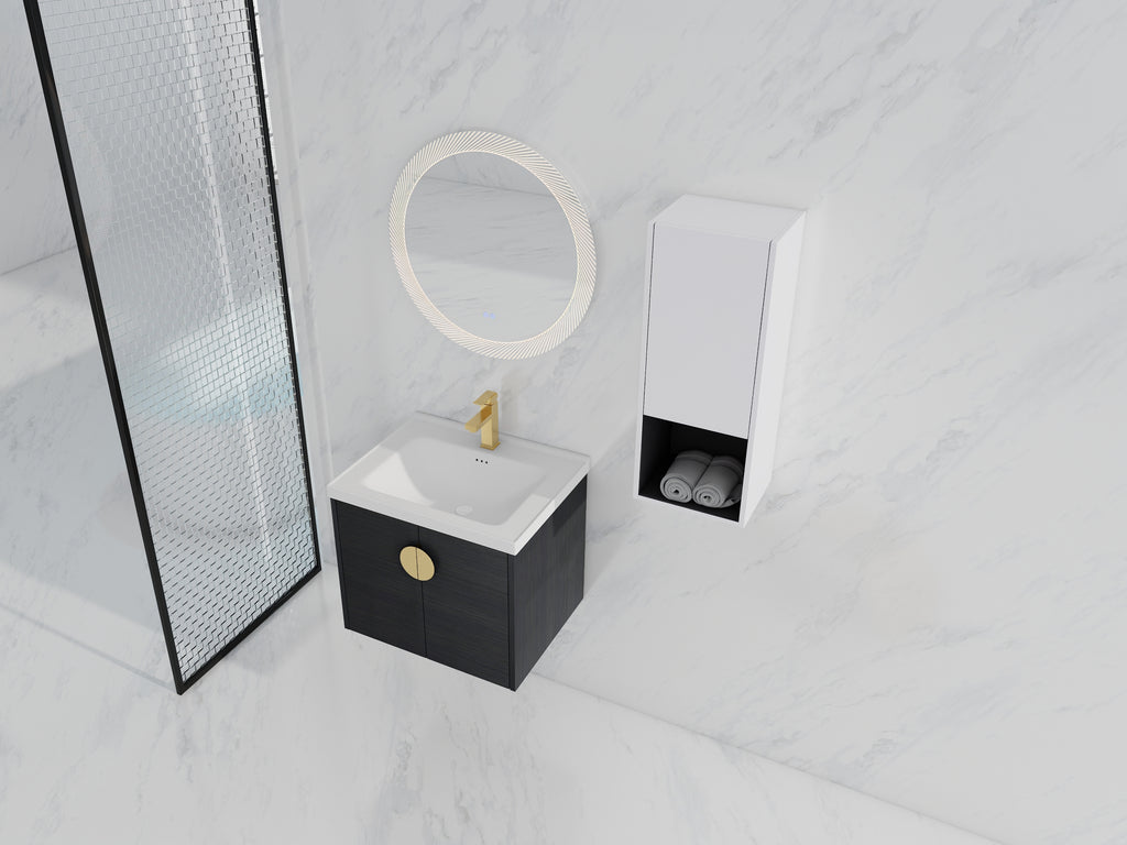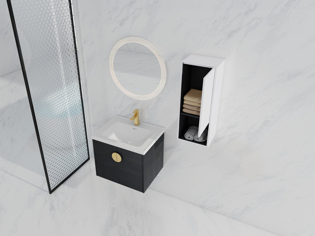 The wall-mounted bathroom side cabinet efficiently utilizes space with its sleek wall-hung design, freeing up floor area in compact bathrooms. The carefully designed interior space and open shelves can orderly store daily essentials such as shampoo and shower gel, making retrieval easy while promoting easy cleaning and maintaining a clean bathroom environment.