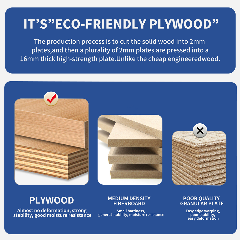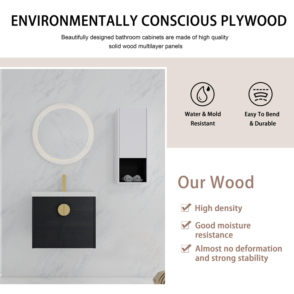 Vanity base is made of high quality plywood that surface material used 'Scratch & Water-Resistant' melamine, which is designed to not only withstand threats of moisture and humidity but also easy to clean and maintain.