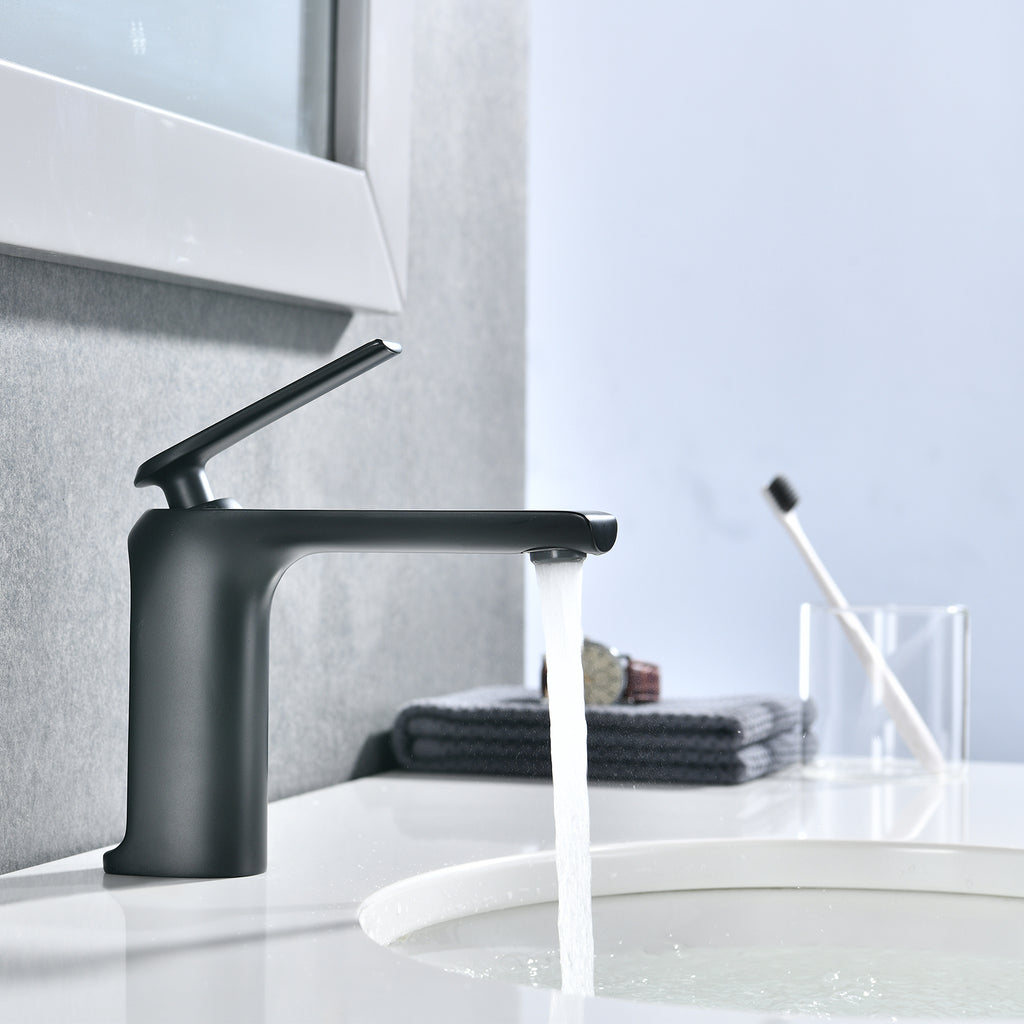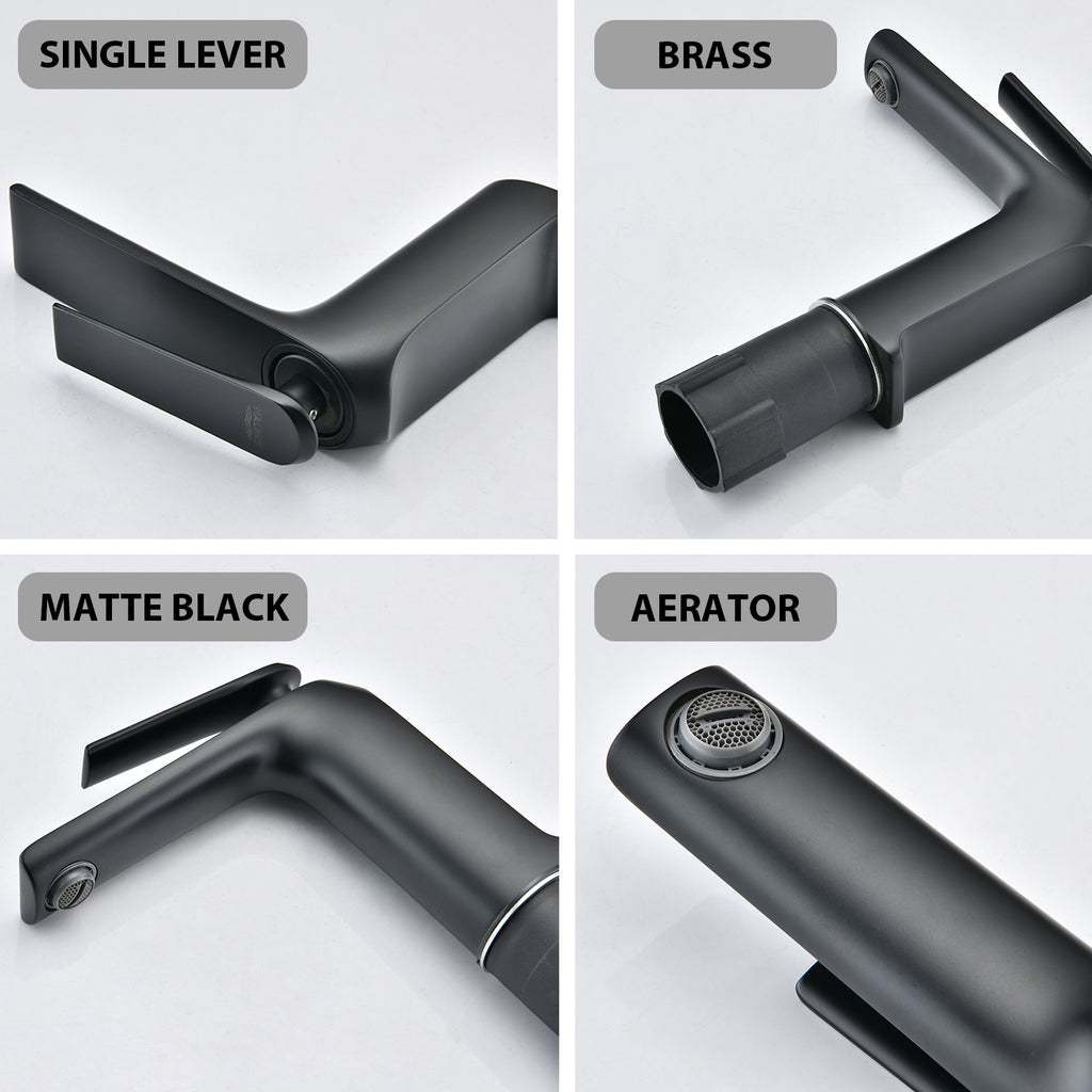 - The black single lever bathroom faucet is solid brass construction, resists rust and corrosion for durability, lead-free to ensure safety of drinking water