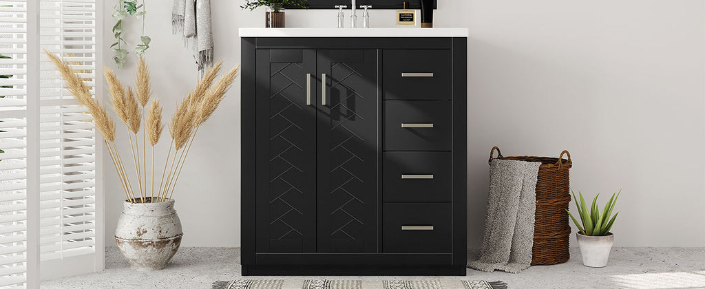 - [ Multi-Purpose Cabinet & Concealed Storage ] Are you looking for stylish and functional storage solutions for your bathroom? Our bathroom vanity provide ample space for all your toiletries and bathroom essentials. The combination of the cabinet body and the drawer perfectly stores all kinds of bathroom products and keeps the necessities away from water stains and dust. Soft-close doors and drawer fronts feature a water-resistant paint finish for durability.