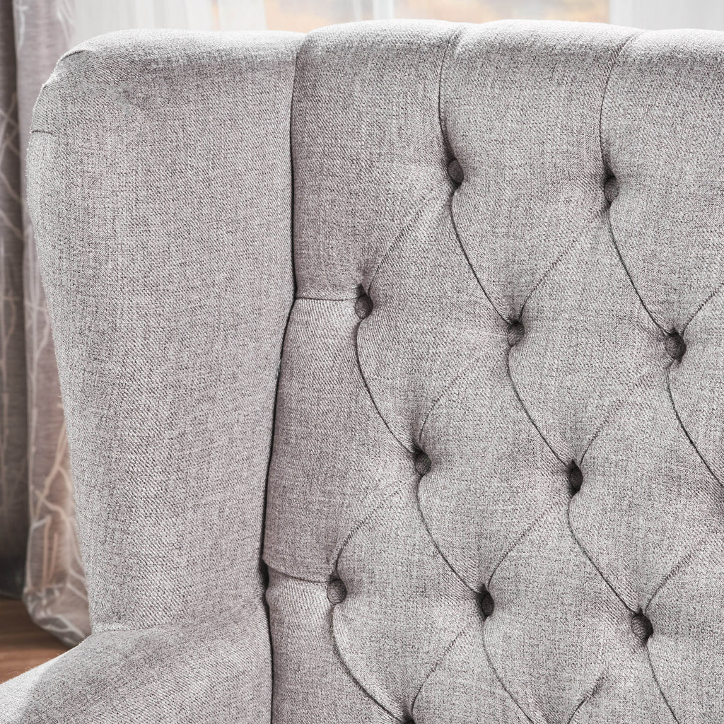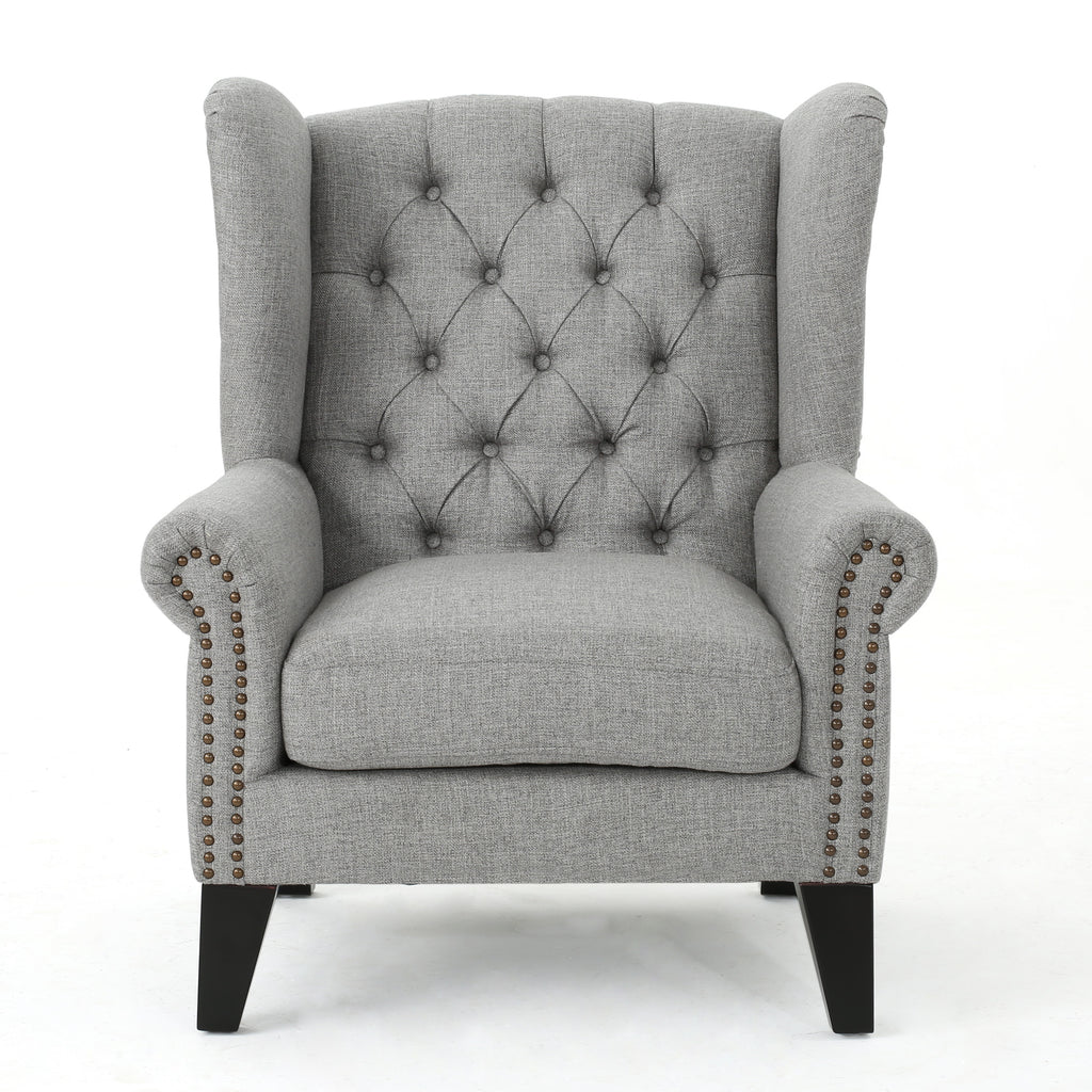 - This antique-styled armchair Brings an unmistakable dignity to any living room. The Tufted back and decorative trim give it the feel of a real period piece. Constructed to the highest Quality standards, This piece will last long enough to become a part of the family