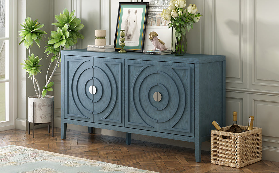 This retro sideboard has four doors with rounded lines on the doors to create a three-dimensional look. You can put it in the kitchen, entryway or living room, the country style cabinet adds a warm atmosphere to your home. You can choose from four colors, antique blue, gray, white and black. Each color presents a different style. Gray and black are more classic, and white and antique blue are brighter and more prominent. They can be styled with your decor and will fit perfectly into any room.