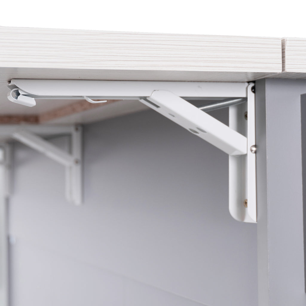 Our white kitchen island's collapsible drop leaf design with sturdy support makes it perfect for compact spaces,seamlessly transforming into a bar cart or mobile coffee center.