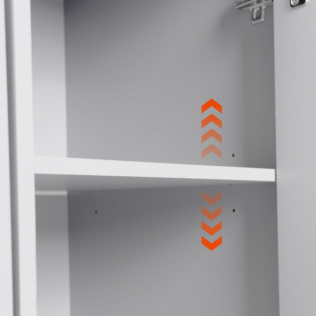 The shelf inside the storage cabinet is designed to be 3-level adjustable for catering to your needs of storing items varied in size.