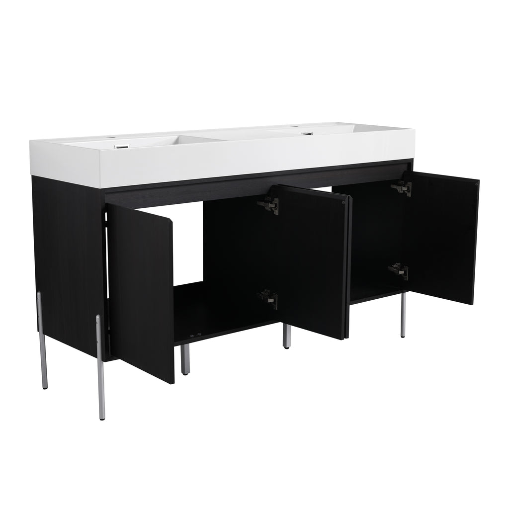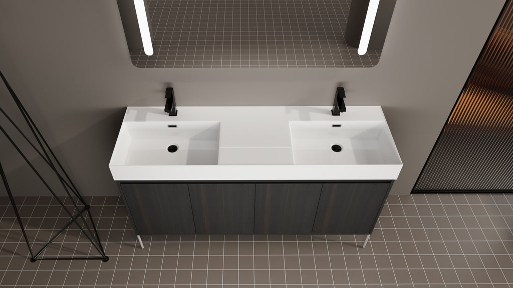 - [Durable Material Plywood]: Vanity base is made of high quality 'Eco-Friendly' plywood that surface material used 'Scratch & Water-Resistant' melamine, which is designed to not only withstand threats of moisture and humidity but also easy to clean and maintain.