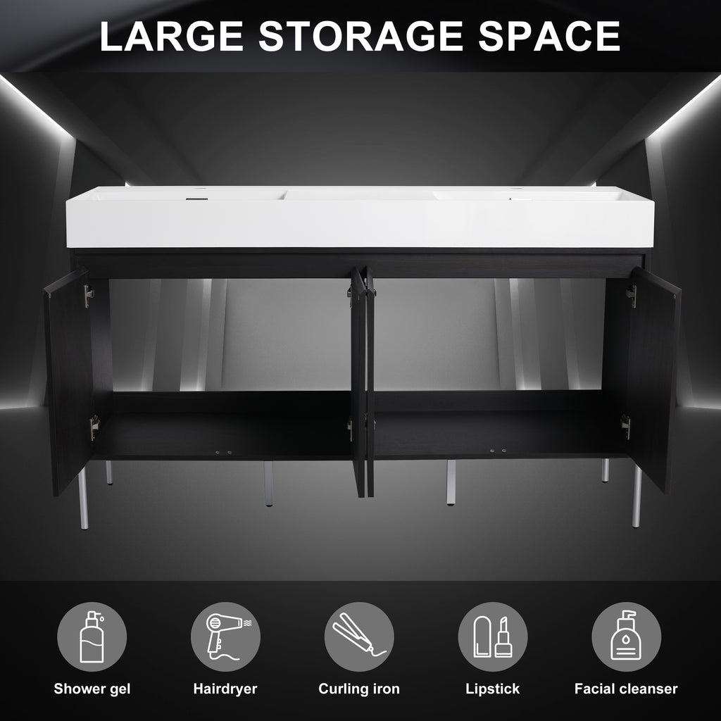 - [Ample Storage Space]: This bathroom vanity is a four door cabinet that keeps your bathroom products away from moisture and dust. Floor-to-ceiling bathroom cabinet, space-saving, with storage at the bottom.