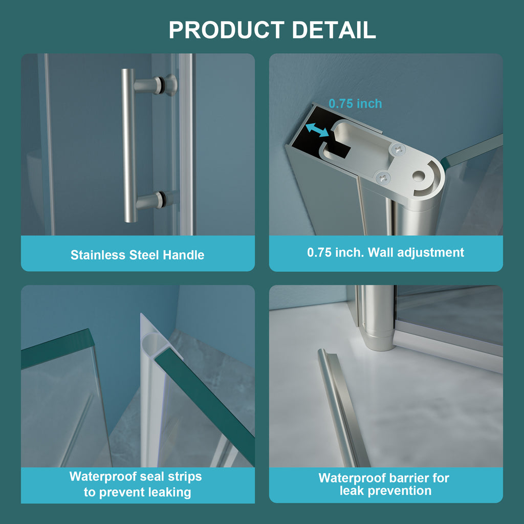 - Premium-Grade Components: The aluminum frame and sturdy hinges of our shower doors are crafted from high-grade stainless steel.