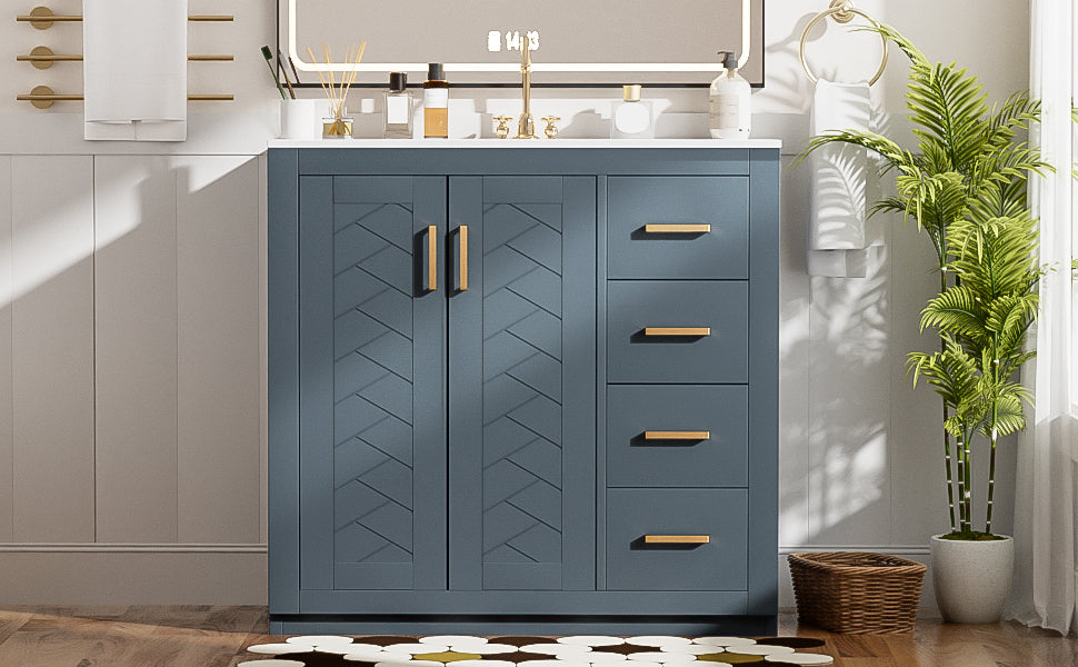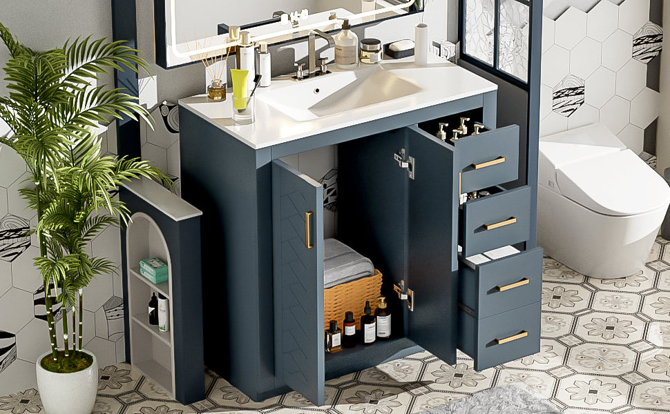 - [ Multi-Purpose Cabinet & Concealed Storage ] Are you looking for stylish and functional storage solutions for your bathroom? Our bathroom vanity provide ample space for all your toiletries and bathroom essentials. The combination of the cabinet body and the drawer perfectly stores all kinds of bathroom products and keeps the necessities away from water stains and dust. Soft-close doors and drawer fronts feature a water-resistant paint finish for durability.