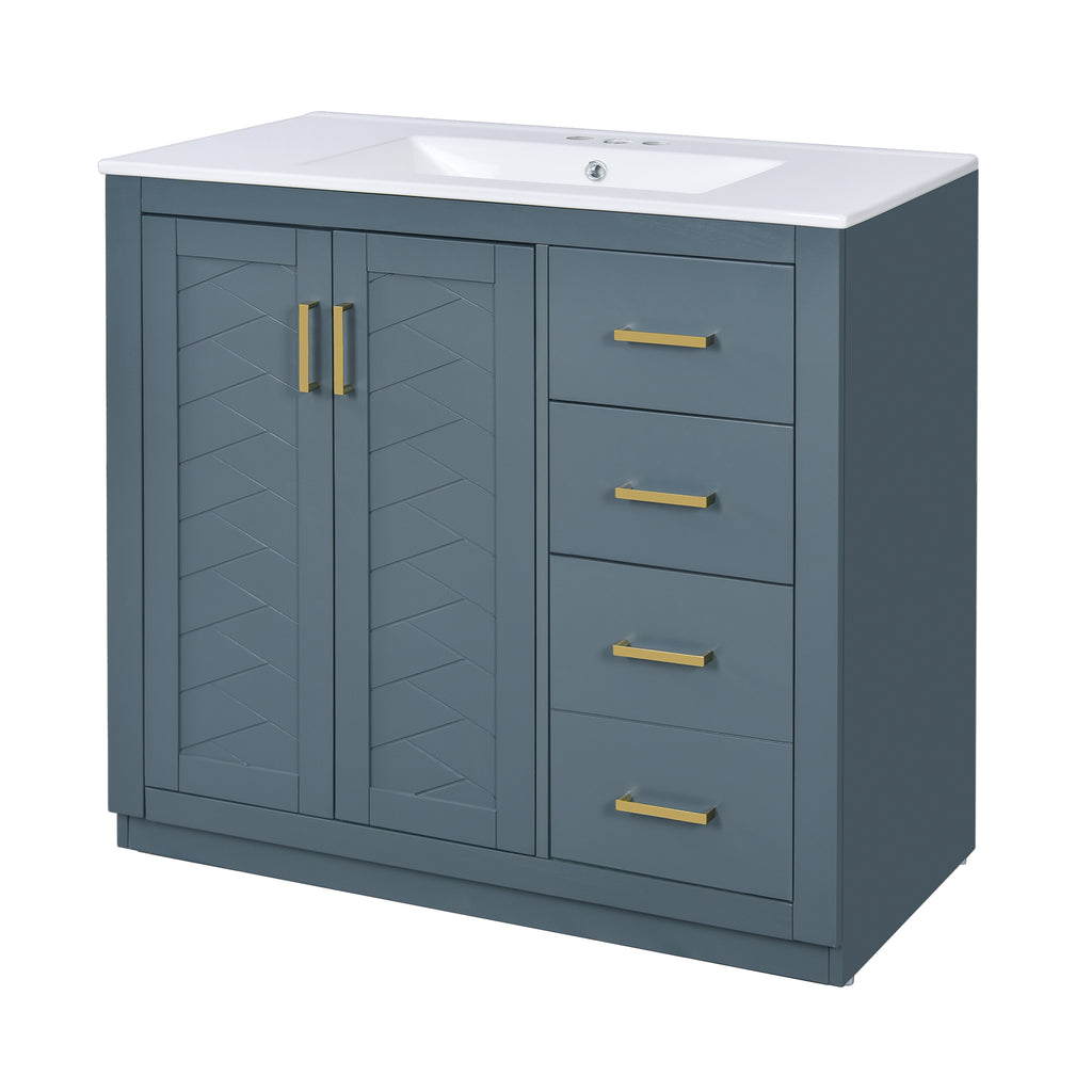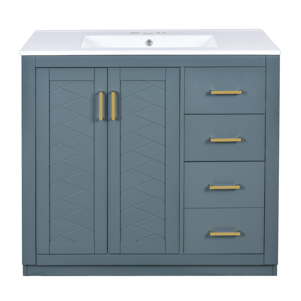 36'' Bathroom Vanity with Ceramic Sink Combo,Solid Wood Frame Bathroom Storage Cabinet