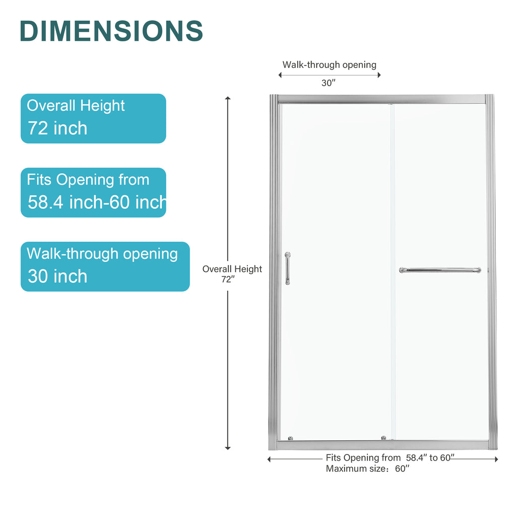 - This shower door is 60 in. W x 72 in. H; the unit can be installed for left or right entry.
