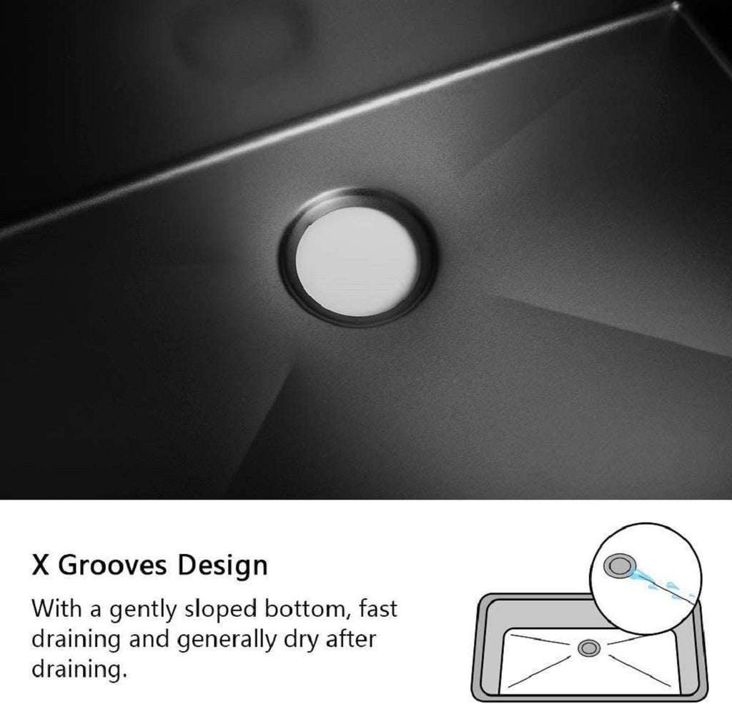 Stainless steel sinks combine fashion with function to create a contemporary look for the kitchen. Stainless bar sink constructed with premium 18-gauge thick grade stainless steel for durability and strength.The corrosion-resistant surface is further protected from rust and oxidation by a meticulous finishing process.X water guiding line at the bottom of the sink have fast drainage and long-lasting. Sloping bottom with groove allows complete drainage. Modern R10 easy clean curved corners.