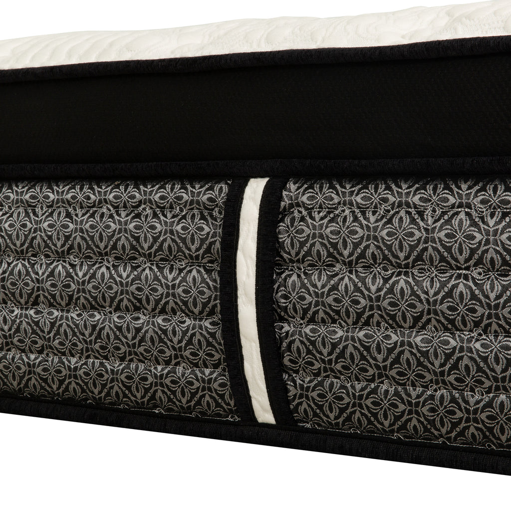 Discover Majesty, where indulgence meets unparalleled comfort for your best night's sleep. With its sumptuous euro top design, it offers an inviting plushness that beckons you to sink into a cloud-like embrace each time you lay down. Featuring a sophisticated design, this boasts a sleek Black border and a plush white knit fabric top, exuding elegance that complements any bedroom decor. Its impressive 16-inch height enhances the sleeping experience, providing a luxurious feeling that caters to your need for restful slumber. This hybrid design merges the best of both worlds: the responsiveness of pocket coils and the contouring comfort of foam layers. The pocketed coil system ensures targeted support for every part of your body, promoting proper spinal alignment and minimizing motion transfer for undisturbed sleep. Immerse yourself in the foam and gel memory foam layers, gracefully conforming to your body while keeping you cool and refreshed throughout the night. Rise invigorated as the adaptive foam soothes pressure points, welcoming a rejuvenated start to your day. Conveniently delivered in a compact box for effortless setup, simply unwrap and witness the mattress unfurl to its grandeur within minutes. Unlock the secret to regal sleep with this meticulously designed to provide the deep, restful sleep you yearn for every single night.