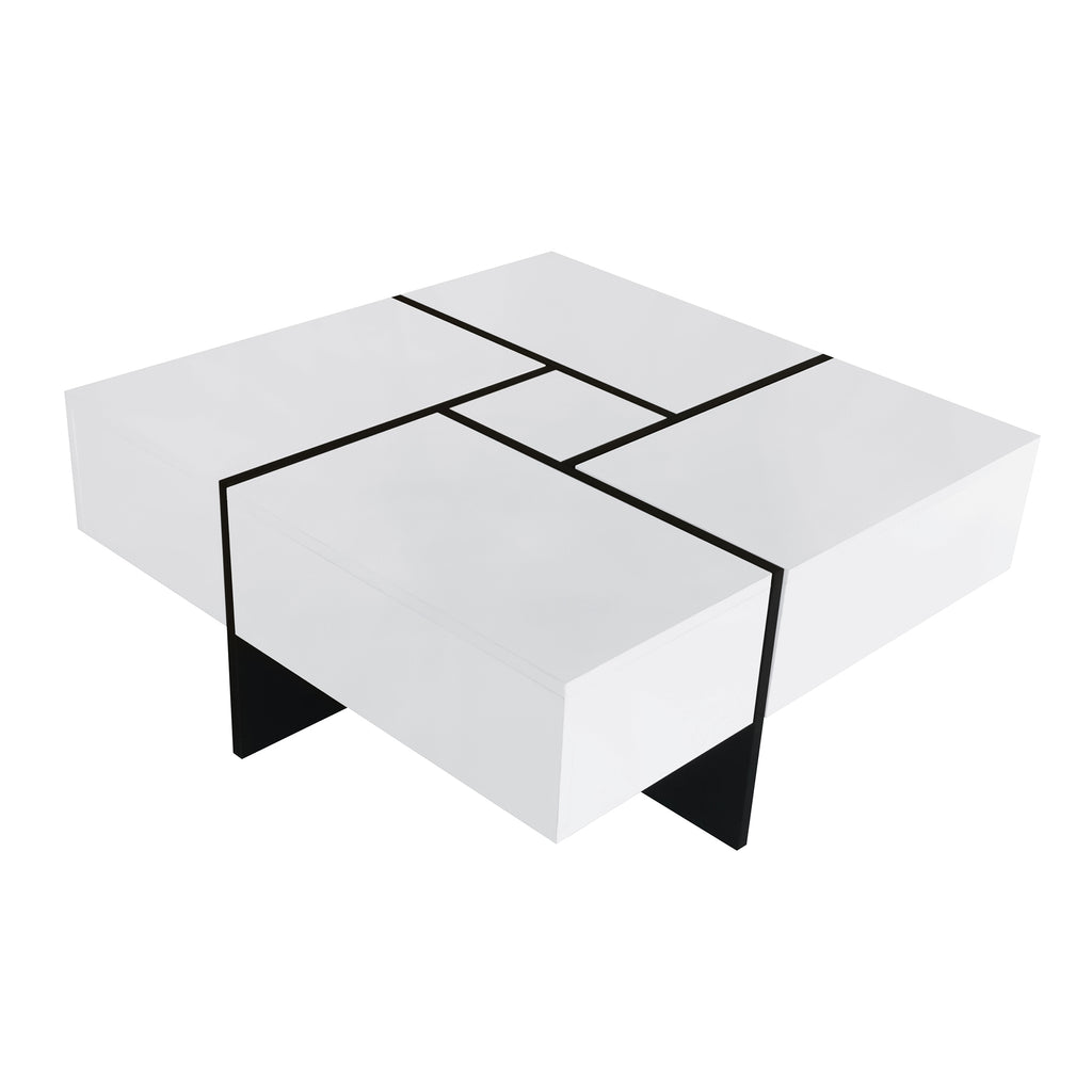 The square tabletop coated with stunning surface is divided into five sections by four straight lines, adding an interesting puzzle designed, which gives this coffee table an eye-catching look and sets it apart from traditional ones.