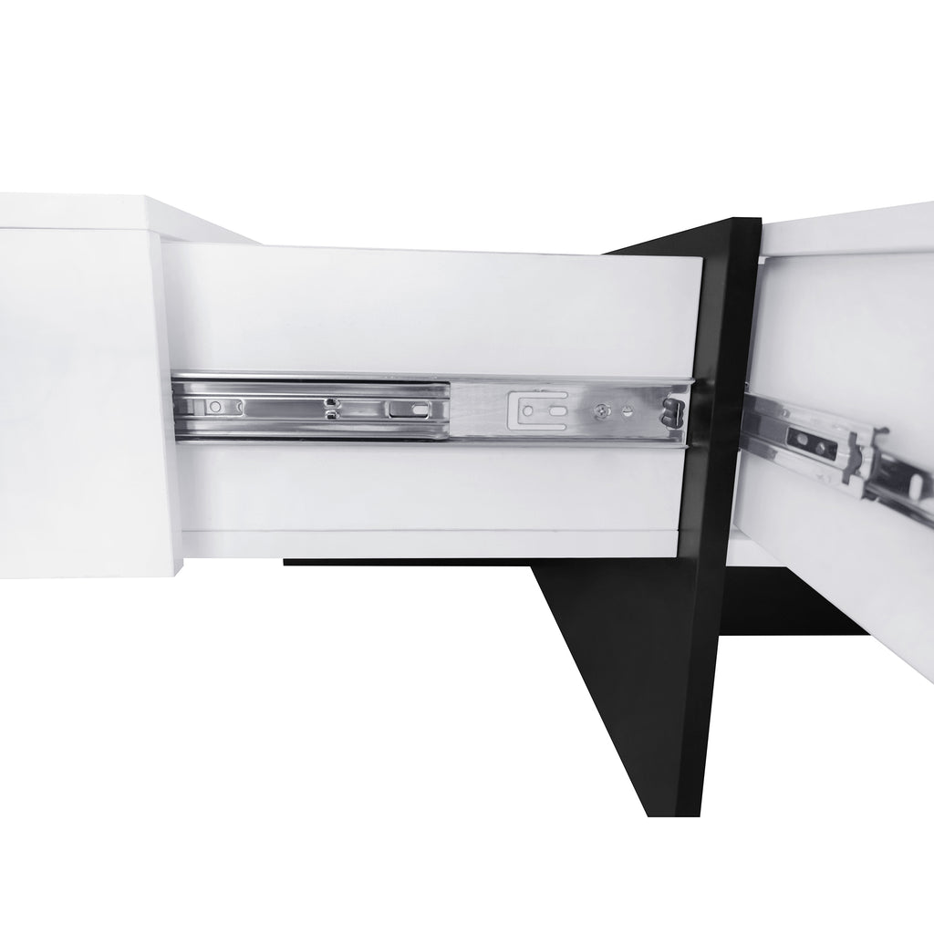 It is made from high-quality particleboard, ensuring sturdiness and durability. The UV high-gloss finish provides a sleek and modern look that is both stylish and practical. The three-section sliding rails ensure a smooth using experience.