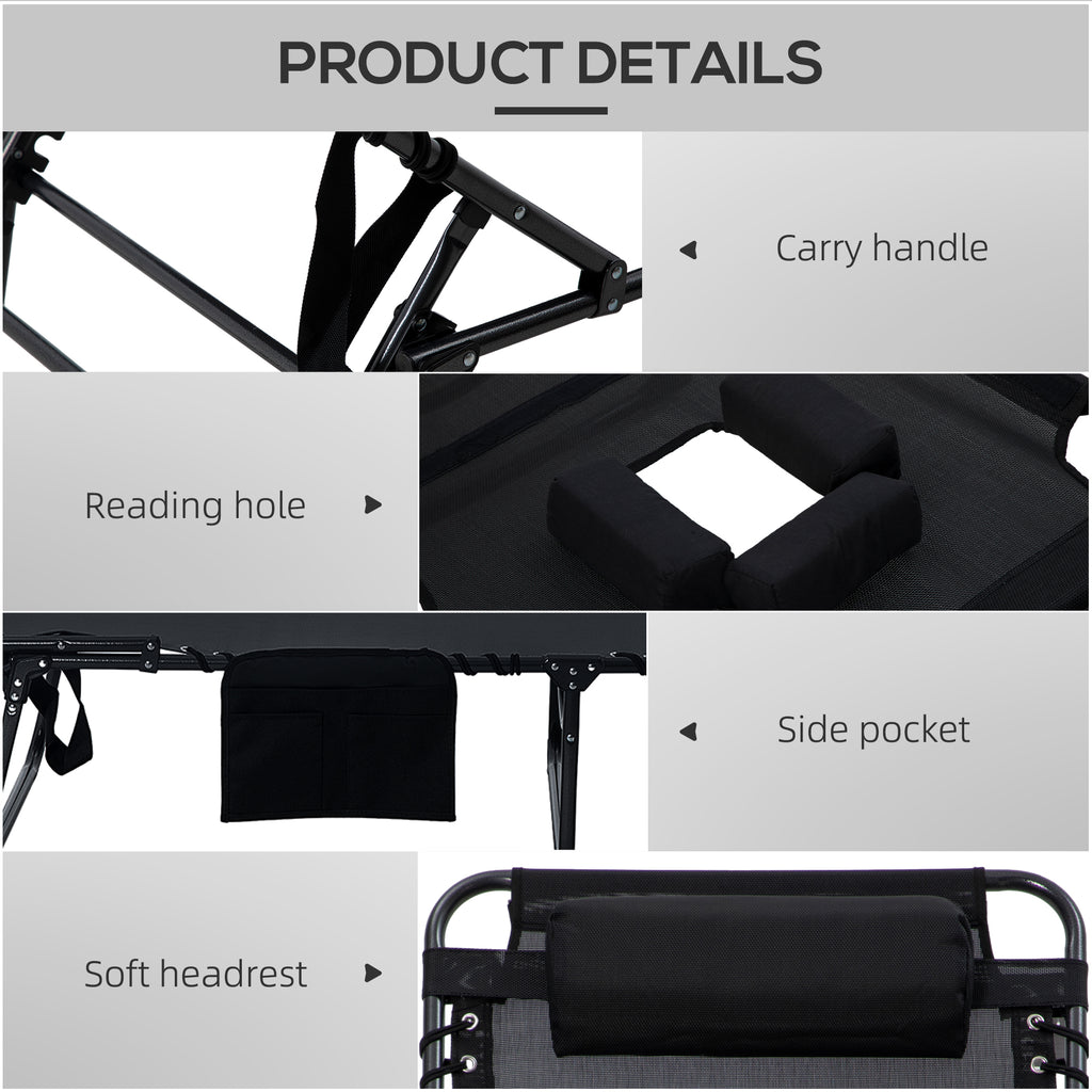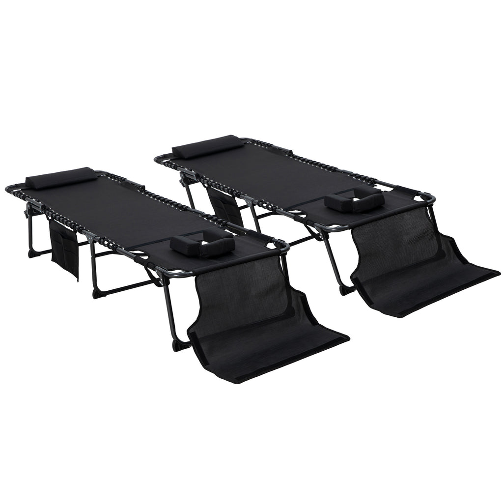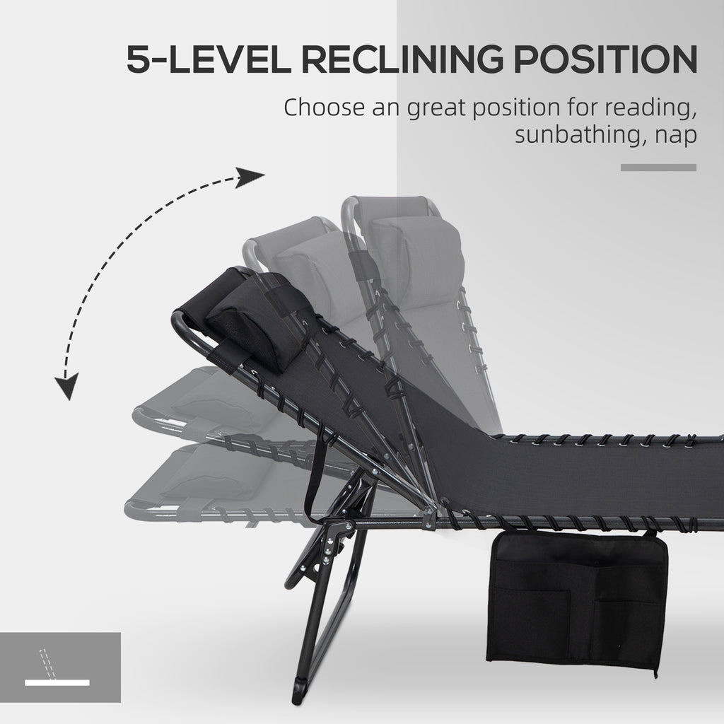 - Two-Piece Outdoor Sun Lounger: Get outside and get lounging. Our outdoor sun tanning chair set offers a breathable mesh surface to keep you comfy in the warm summer sun. They have plush pillows to pad your head and a bouncy bungee suspension to keep your seat low pressure.