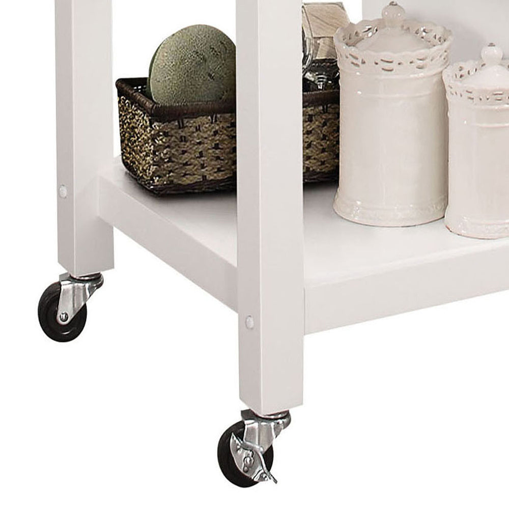 This versatile serving cart ensures stability and safety with two locking wheels, and features a convenient towel rack for easy access to kitchen essentials. It includes a cabinet for concealed storage, a stylish wine rack shelf, two open shelves for frequently used items or decor, and a drawer for utensils or small items.
