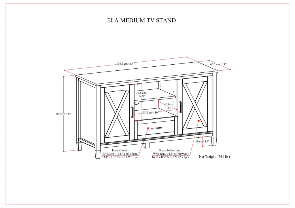 - Features one functional bottom drawer with metal drawer glides, two (2) side doors with storage and one (1) adjustable shelf