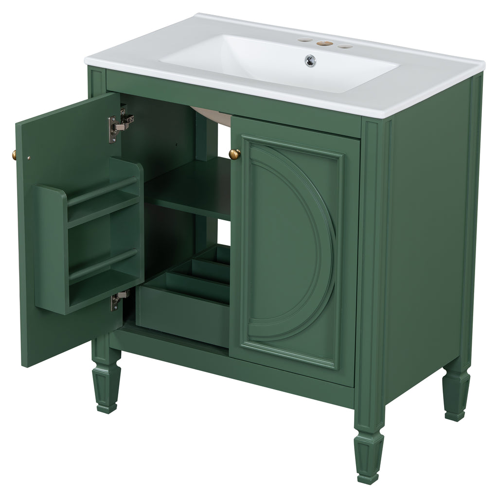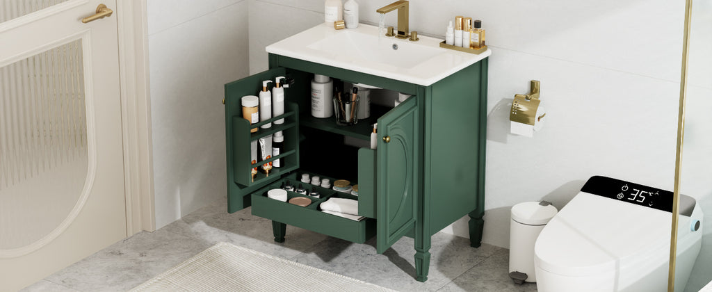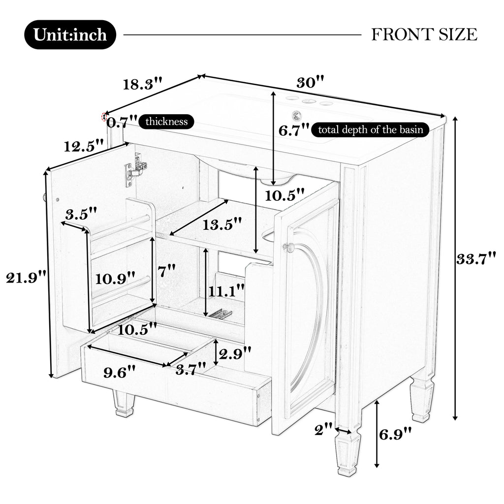 - Material: Practicality and durability is important to bathroom facilities, so we use real wood and MDF boards for this product, which not only increases the product stability but also ensures a long-lasting use. Furthermore, the surface of this vanity cabinet is in painted finish.