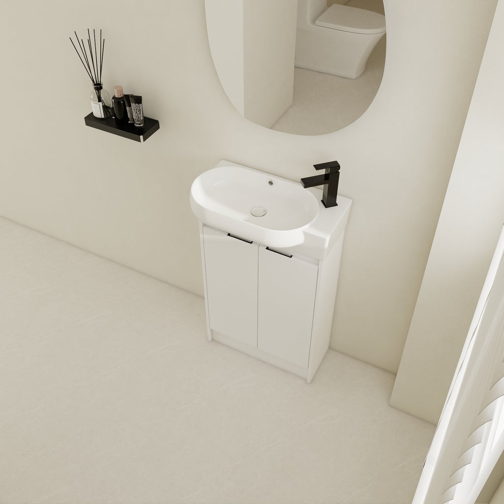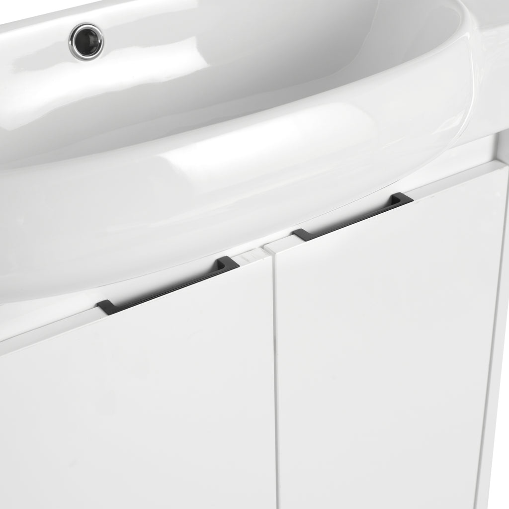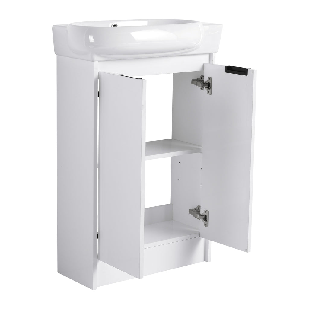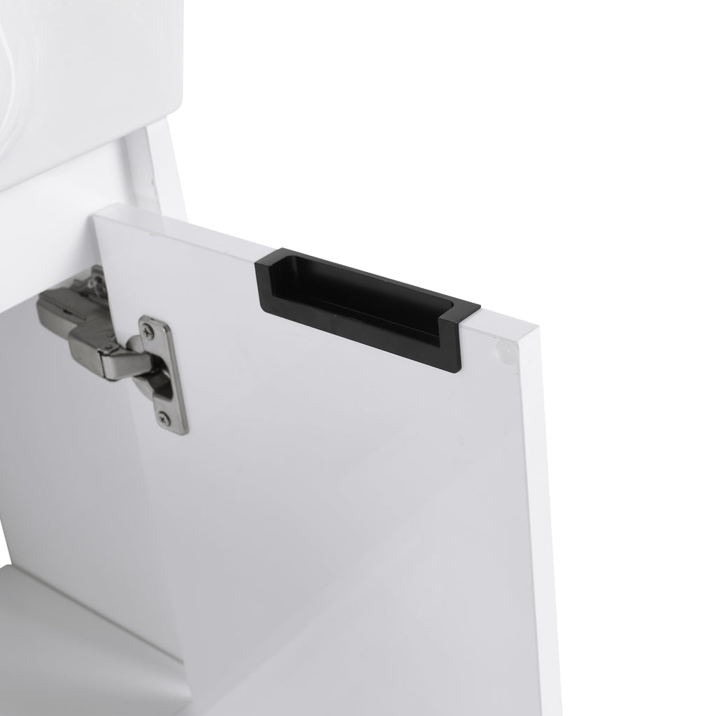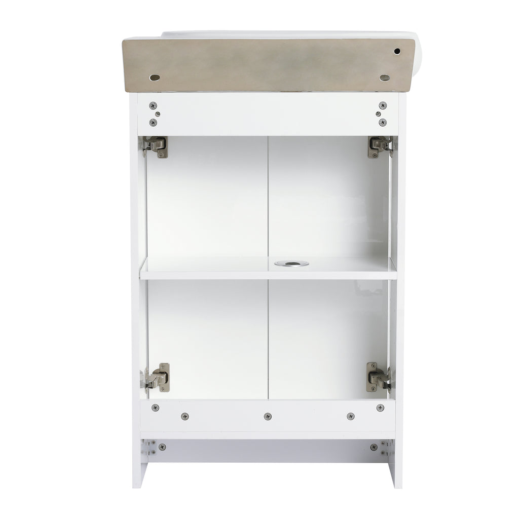 The bathroom cabinet and basin integral design make the product more concise and easy. The bathroom cabinet has its own adjustable shelves inside, providing a lot of extra space for the bathroom.