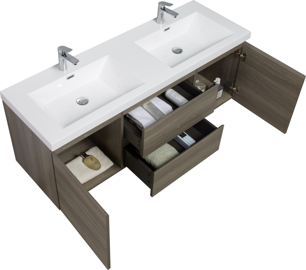 - Easy to Install: The open back design allows for easy plumbing. All components are pre-drilled for quick assembly in less than 30 minutes. Experience convenience and sophistication in your bathroom with this stylish and functional vanity solution.