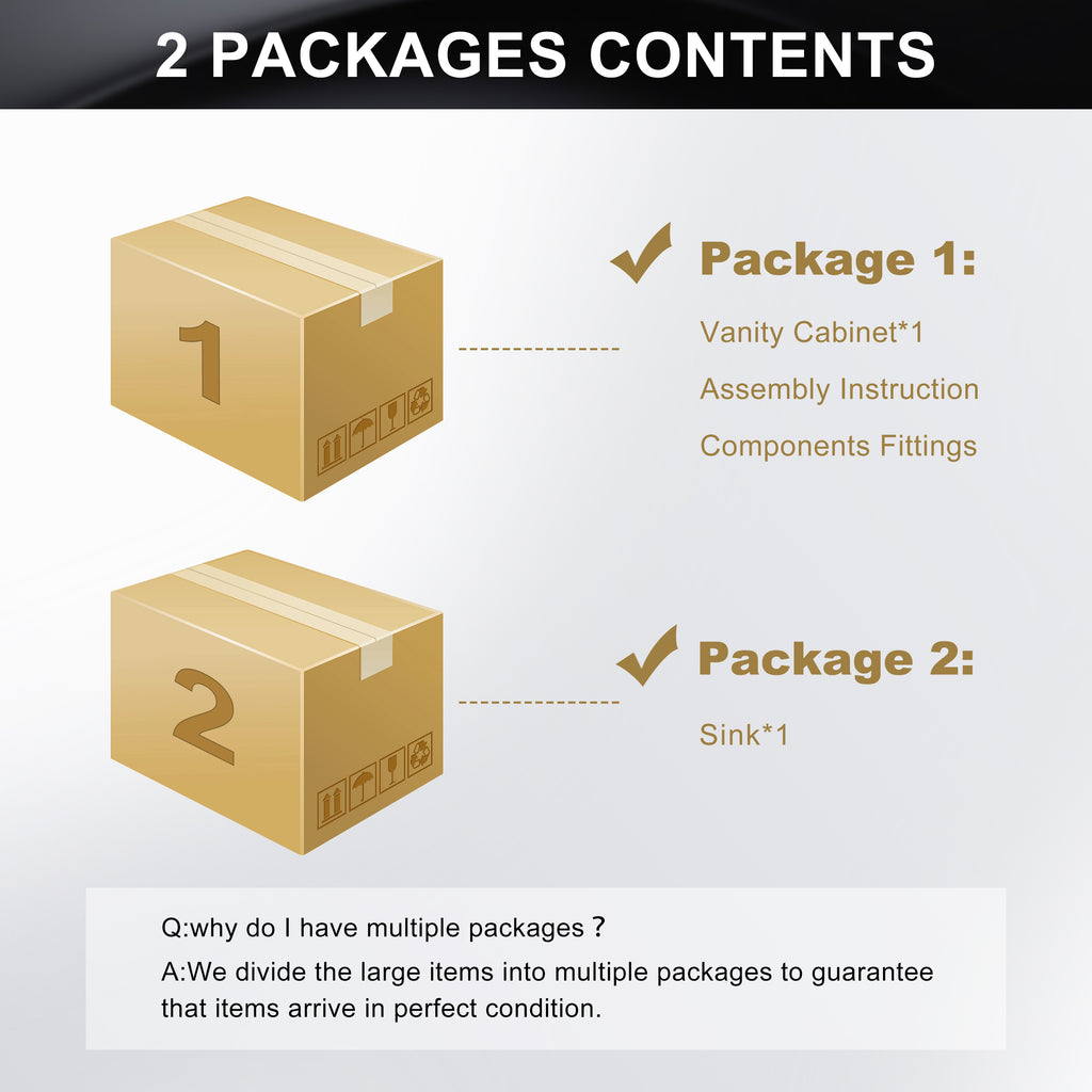 - Practical Bathroom Vanity:This bathroom vanity is made of plywood construction. It is not only sturdy, but also for long lasting use. The bathroom cabinets and sinks have clean lines and modern detailing to make your bathroom more beautiful and tidy.