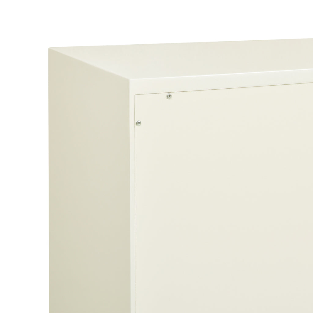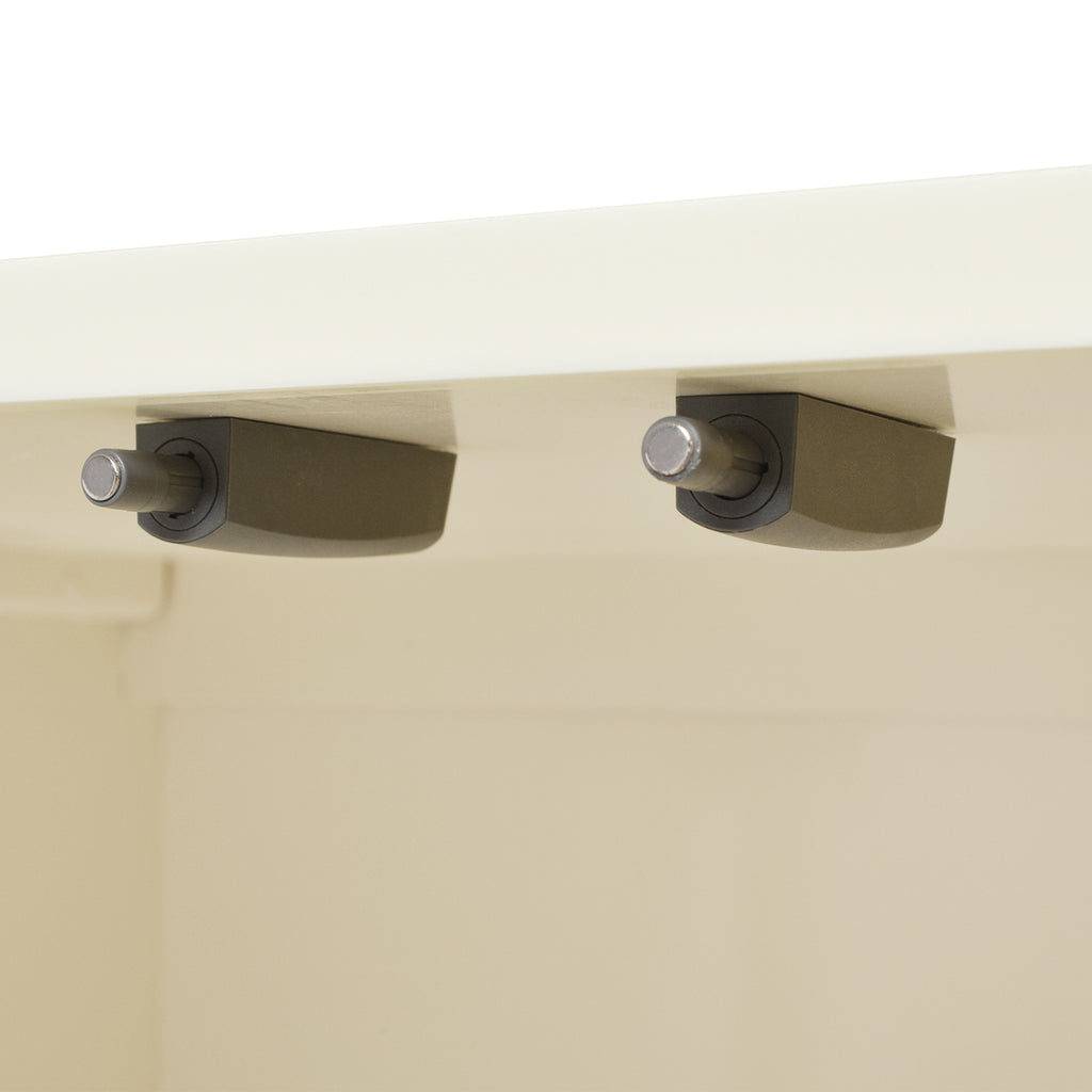 • 3 spacious storage areas behind 5 cabinet doors with adjustable shelves