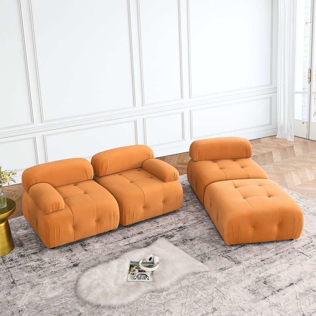 - Sturdy solid wood frame, soft velvet, filled with high-density sponge,button tufted design, making this sectional sofa beautiful and comfort, it can be perfectly matched with your apartment, house or conference room.