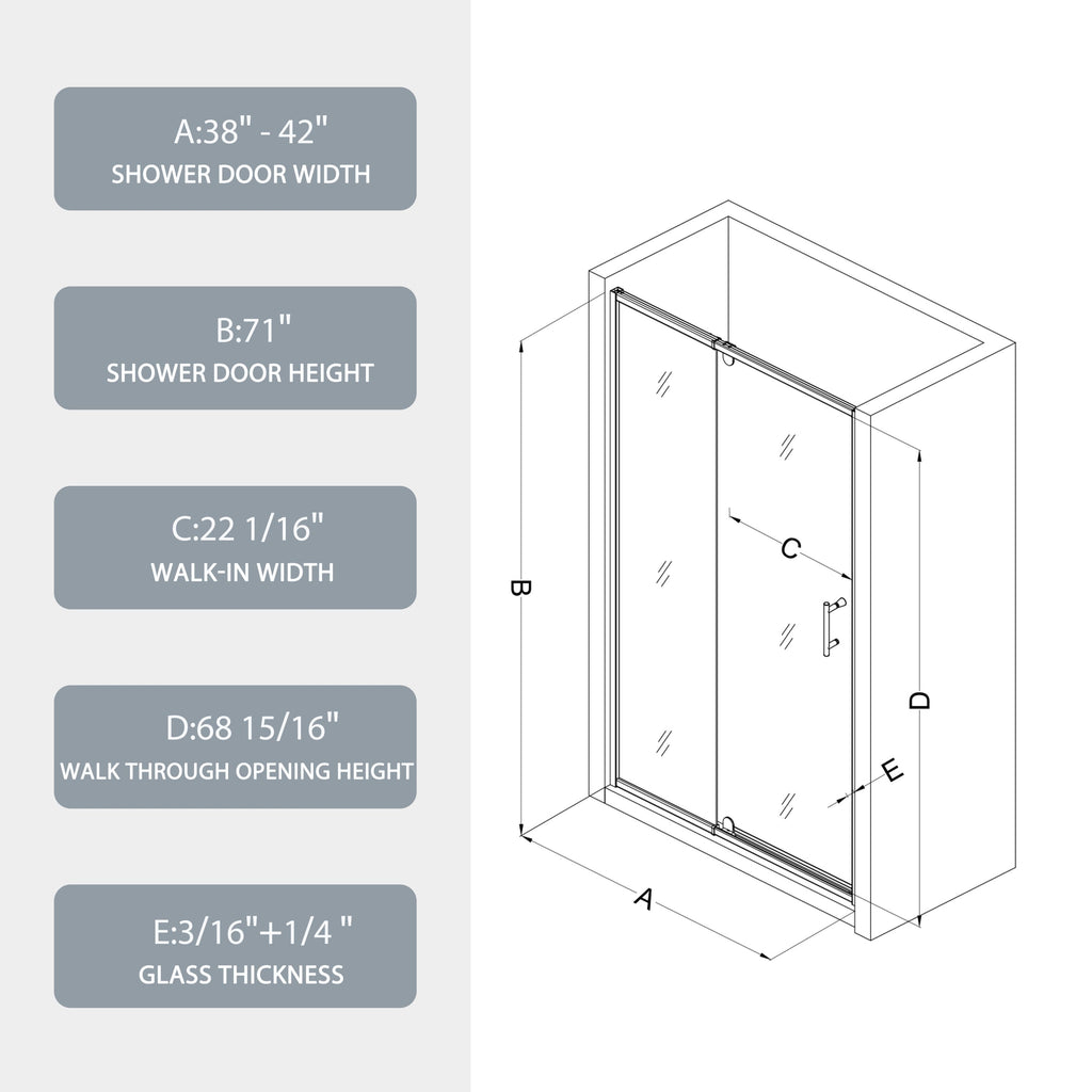 - The shower door covers 4 'size range, suitable for width 38-42'