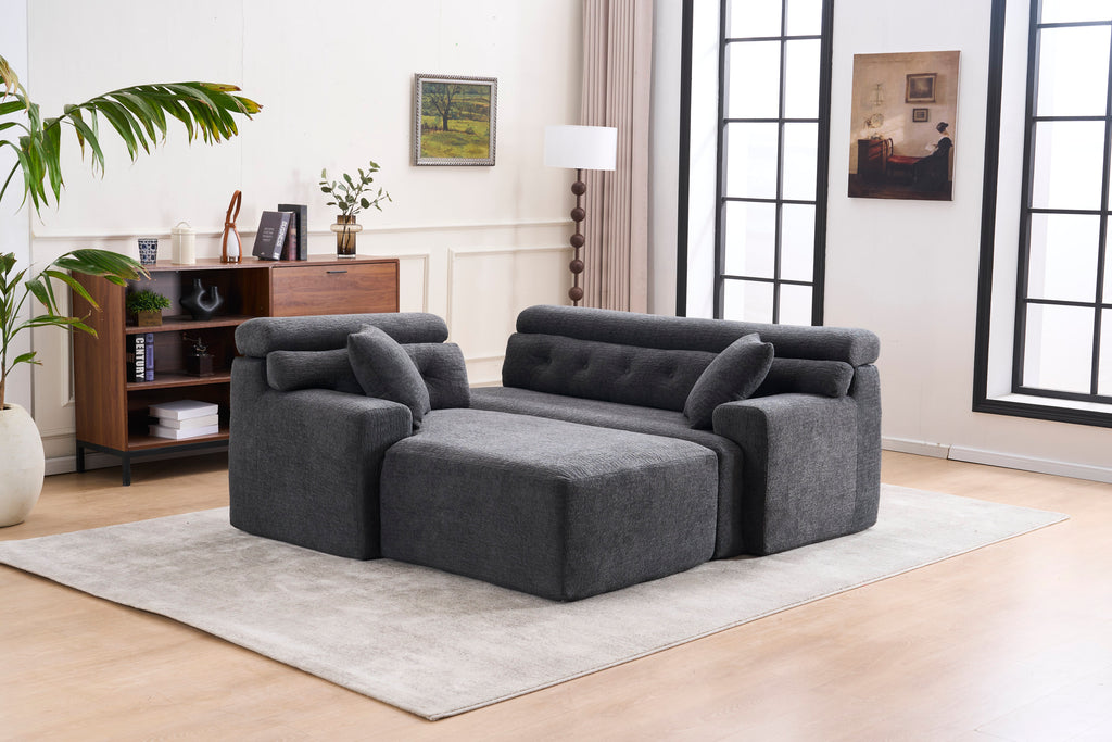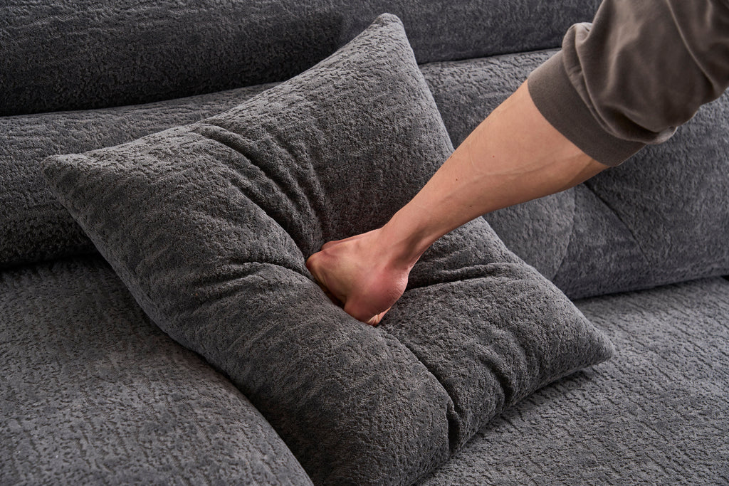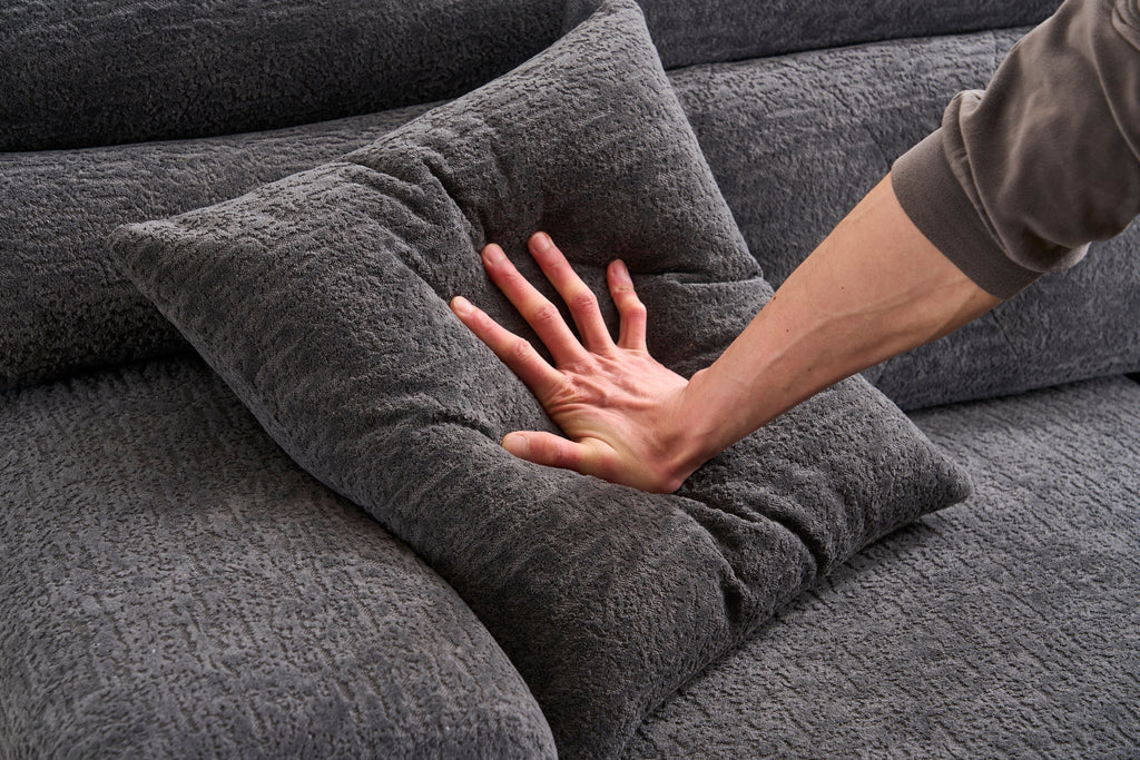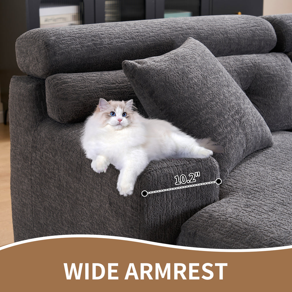 - Compression Sofa with wider armrests, deeper seat depth, and raised backrest provide a more comfortable seating experience. The 2 small pillows included for free can be cradled in your arms or leaned against your back, allowing you and your family to relax even more. The super wide sofa gives every part of your body plenty of space to relax.