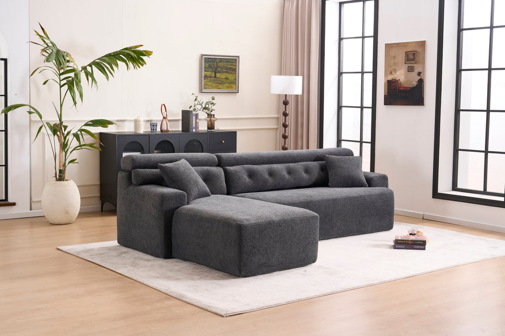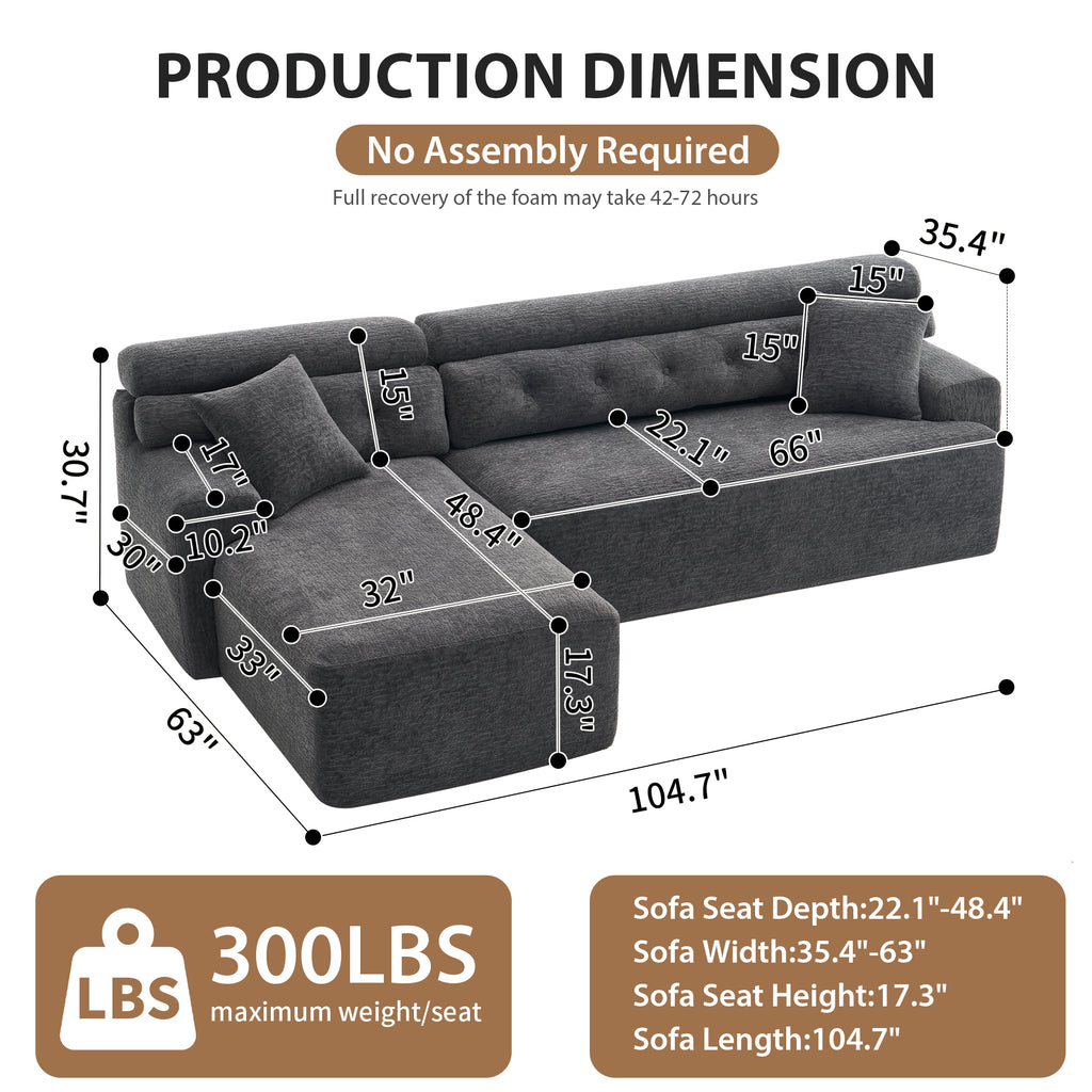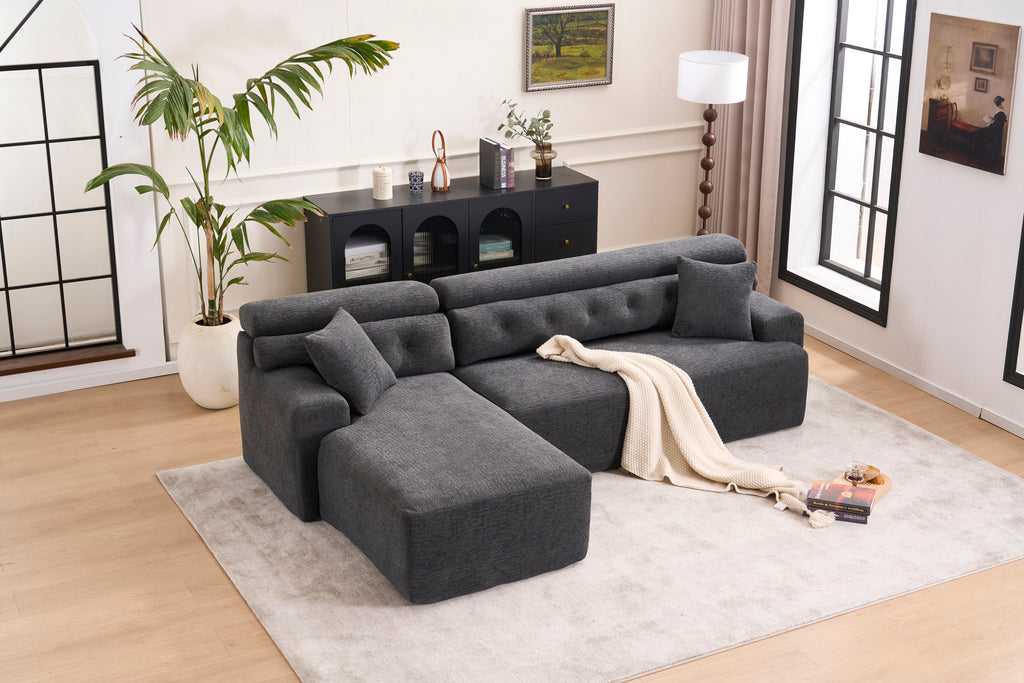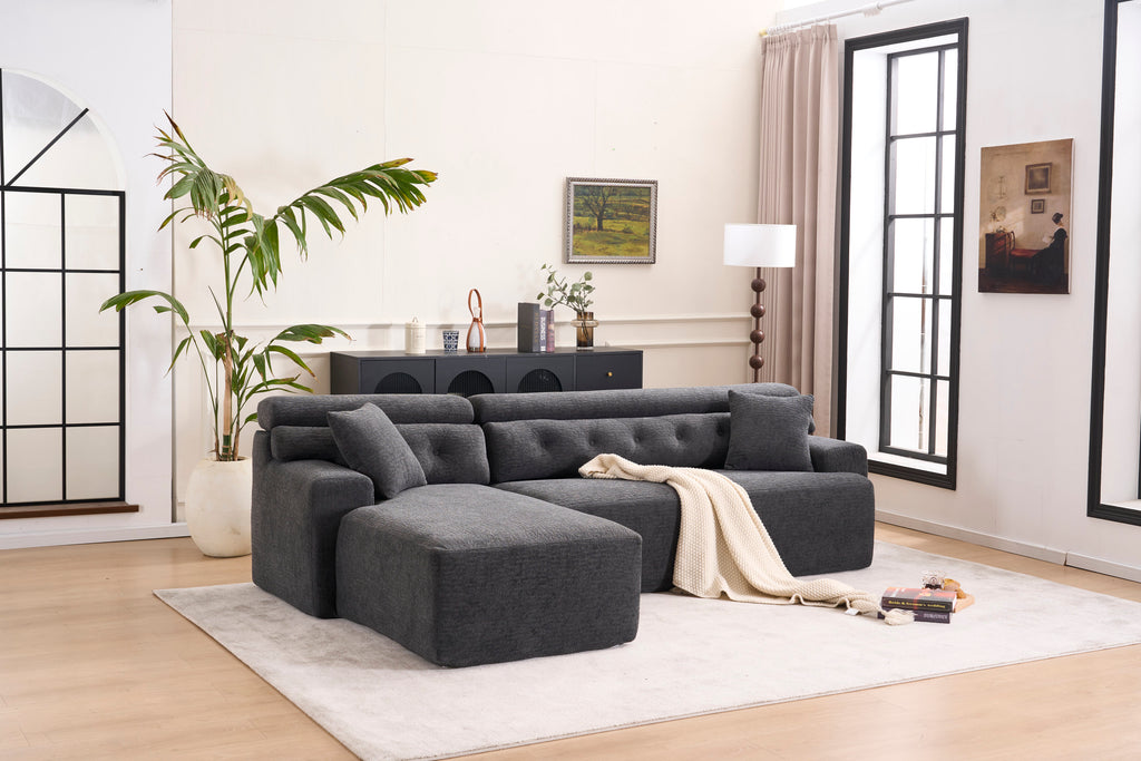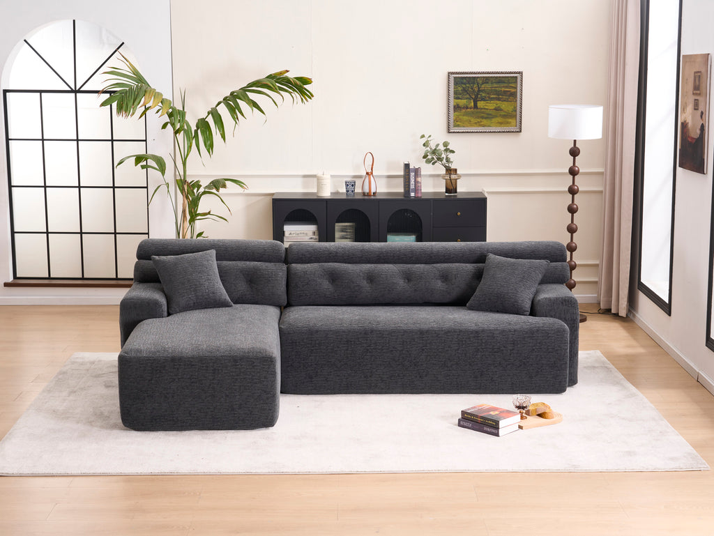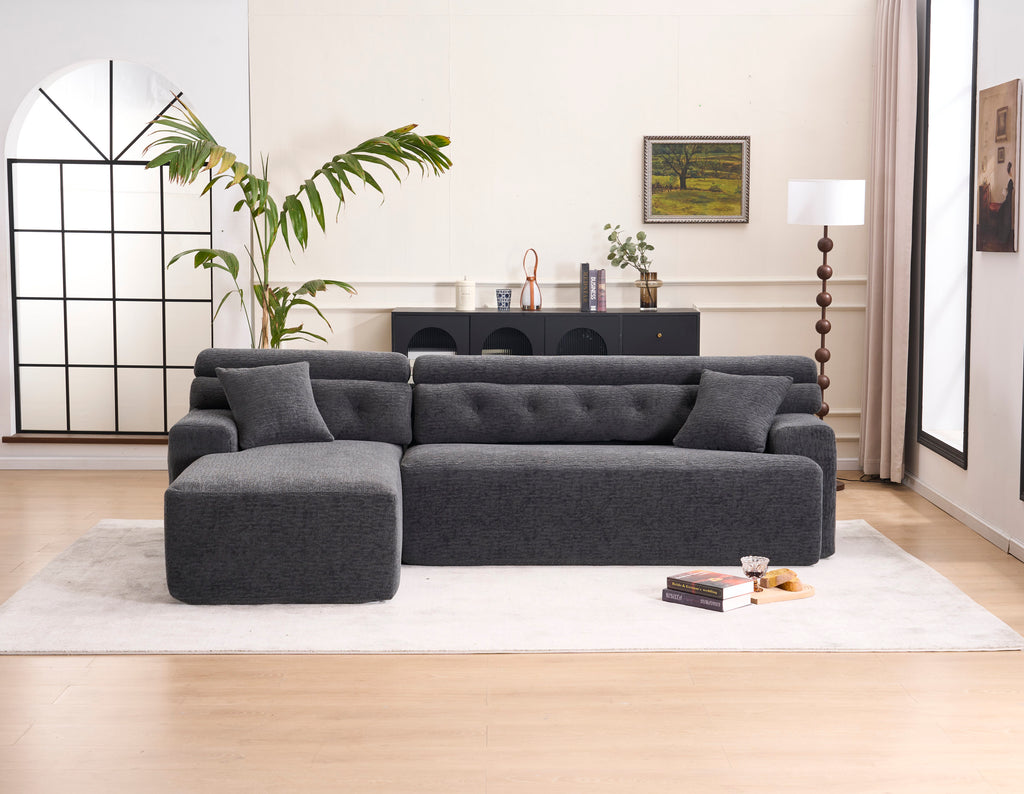- With it's sleek lines and floor-to-ceiling design, our L modular sofa effortlessly blends with any interior decor theme. Whether placed in a living room, entertainment area, or even a spacious office, this sofa becomes the focal point, exuding sophistication and style