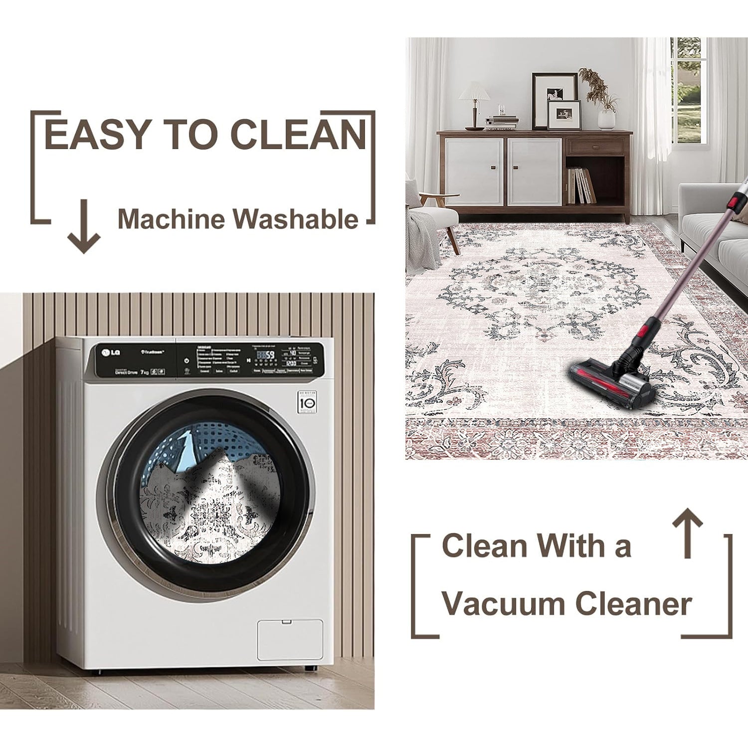 2.Easy to Clean: Use vacuum to clean the rugs regularly to prevent dust and crumbs from setting into the fibers, Machine washable rug making it easy to maintain a fresh and clean appearance.