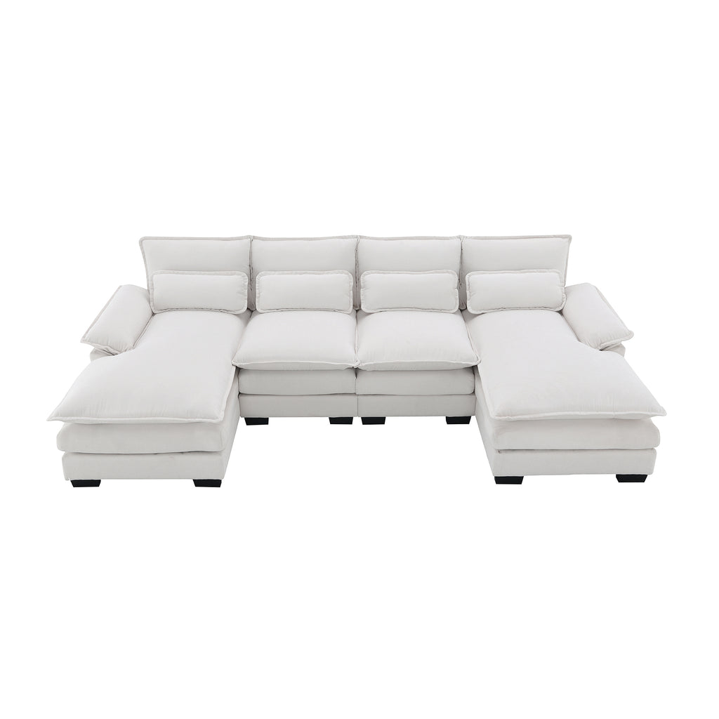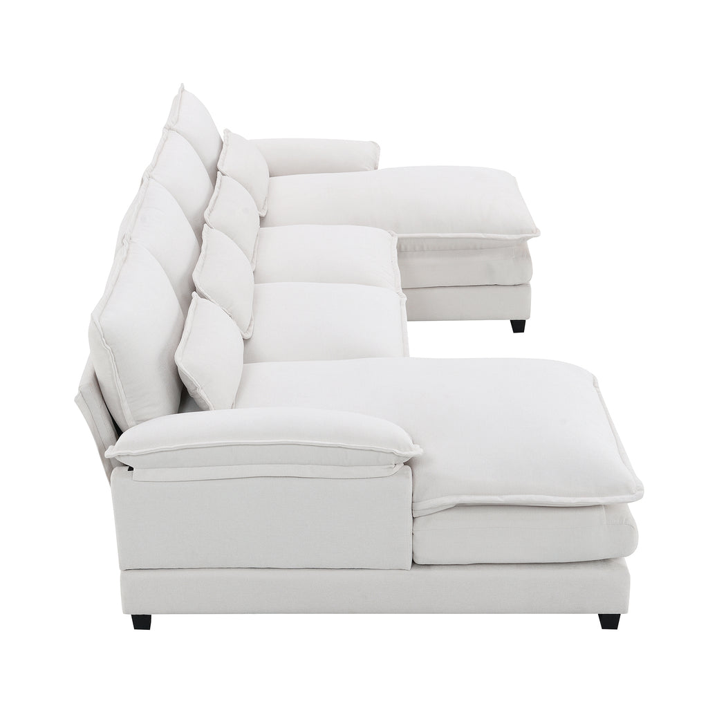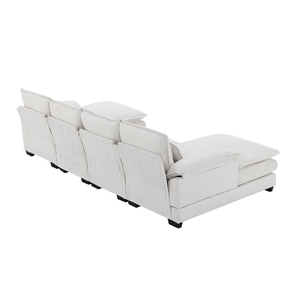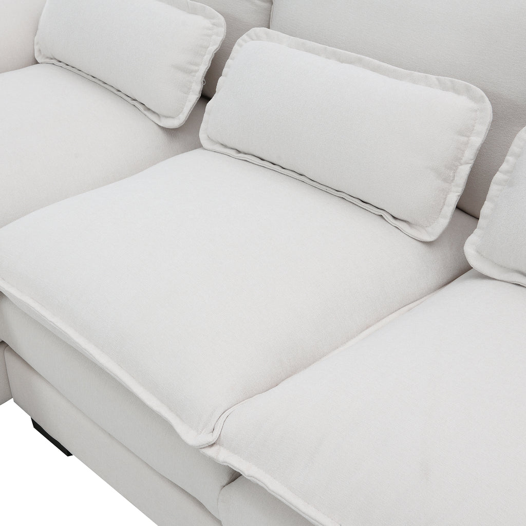 This modern sectional sofa has a classic design that will never go out of style. The upholstery and sleek lines blend perfectly to create a harmonious appearance that can suit any decor style and enhance your space. Our sofa comes with four waist pillows, providing extra support and a touch of decorative charm to your living space.