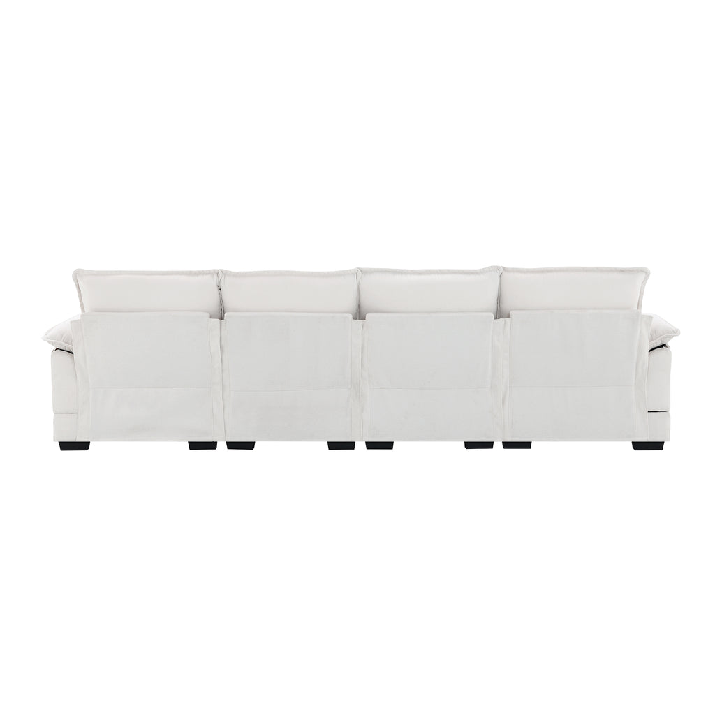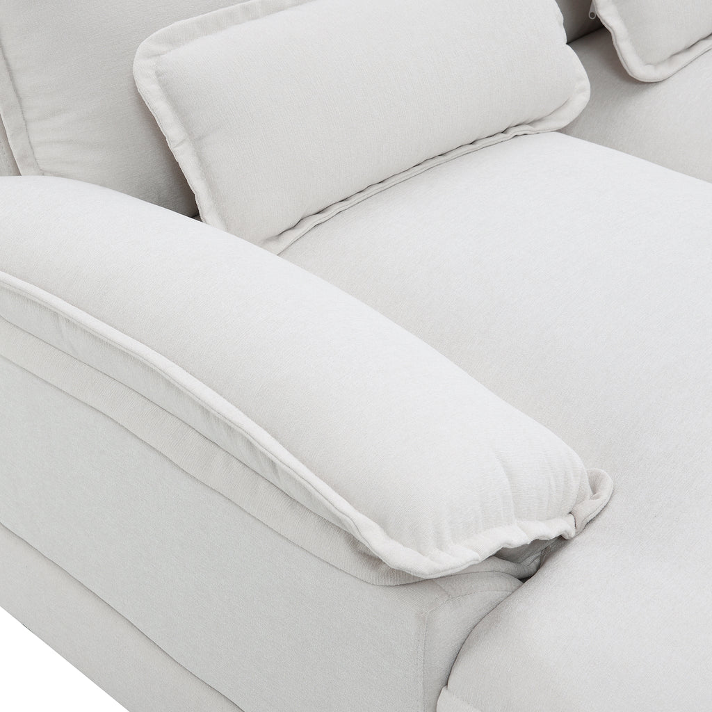 - Comfortable design: The white sofa is made of high-quality chenille, which is soft, comfortable and durable.Armrest pockets on both sides of the sofa can relax your head, and there are also 4 lumbar pillows to give better lumbar support, making it easy to adjust your posture and reduce discomfort and fatigue.