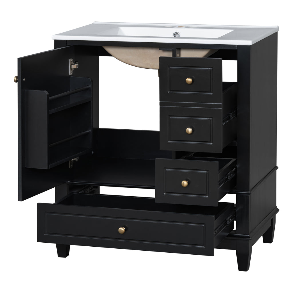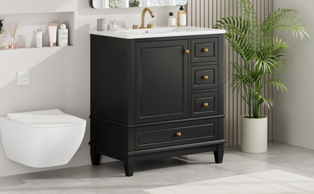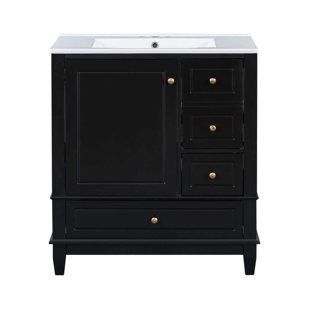 - Material: Practicality and durability is important to bathroom facilities, so we use real wood and MDF boards for this product, which not only increases the product stability but also ensures a long-lasting use. Furthermore, the surface of this vanity cabinet is in painted finish.