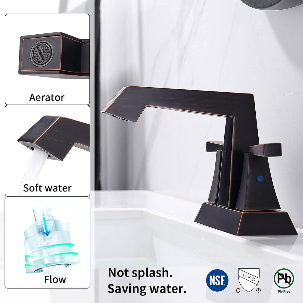 - Modern designed hot & cold dual handles ❤ —— The handle accords with the ergonomic design, this bathroom sink faucet is more comfortable to use. Its two handles give you more control over the temperature and provide aerated water flow. Angular lines edges of the supwork oil rubbed bronze bathroom faucet create a modern appeal at an attractive price.
