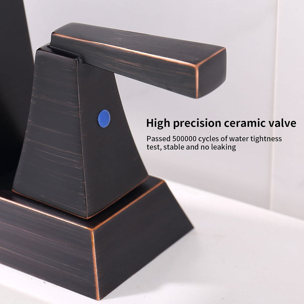 - Premium material ❤ —— Bathroom faucet oil rubbed bronze use seal technology with ceramic disc, requires no lubrication and eliminates wear on seals for life which reduces leak points, is less hassle to install and lasts twice as long as the industry standard. You can install with confidence. Built to last, the bathroom faucet has a gloss finish. Use it every day. Clean it as you wish. You'll never scrub or wear off the beauty of a finish. Bathroom faucets finish won't tarnish or flake.
