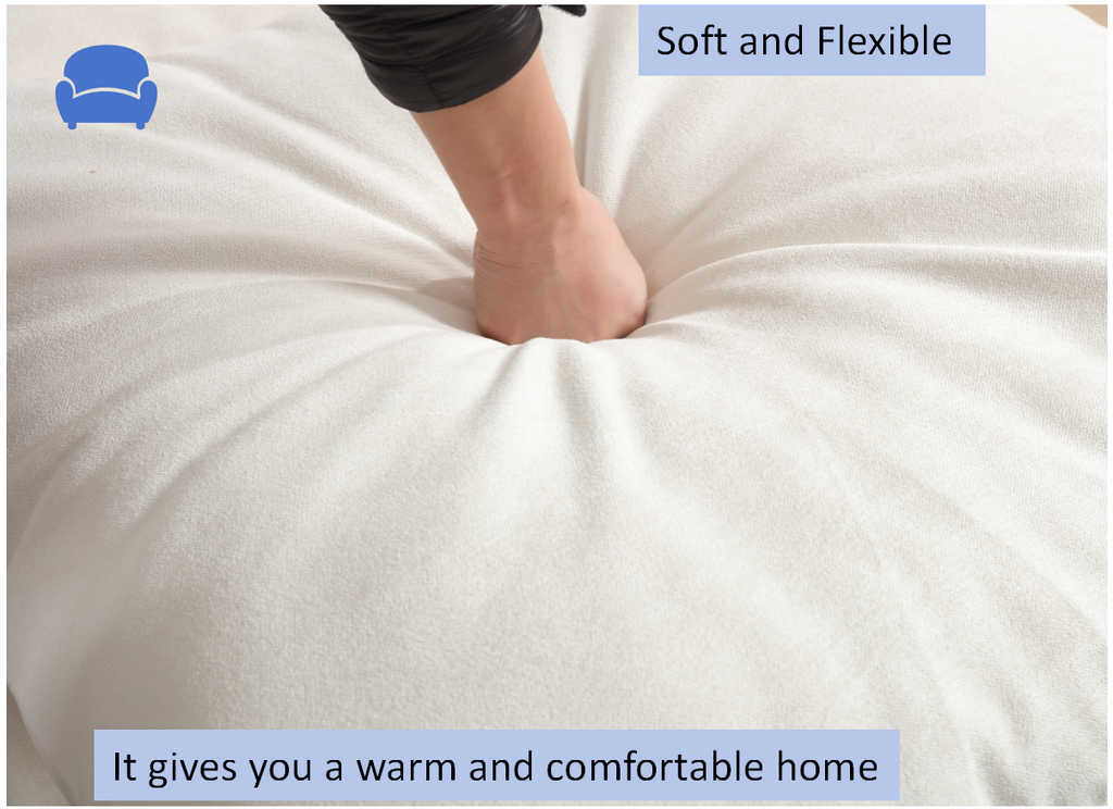 - Double cushion: Provide a softer and more comfortable wrap-around feeling.The top cushion is filled with pure high density foam for a softer feeling,the lower cushion is filled with pocket springs with high density foam for better support.
