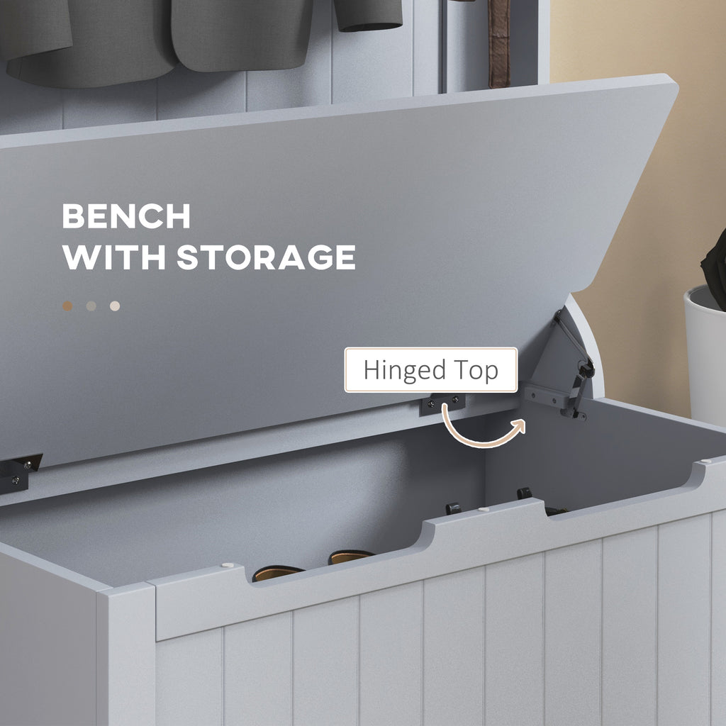 - Sit & Store: We all have those 'go-to' clothes and shoes that are our favorites, and we don't leave the house without them. This mudroom bench with storage and hooks lets you sit down and change your shoes or grab your favorite clothes items before leaving the house.