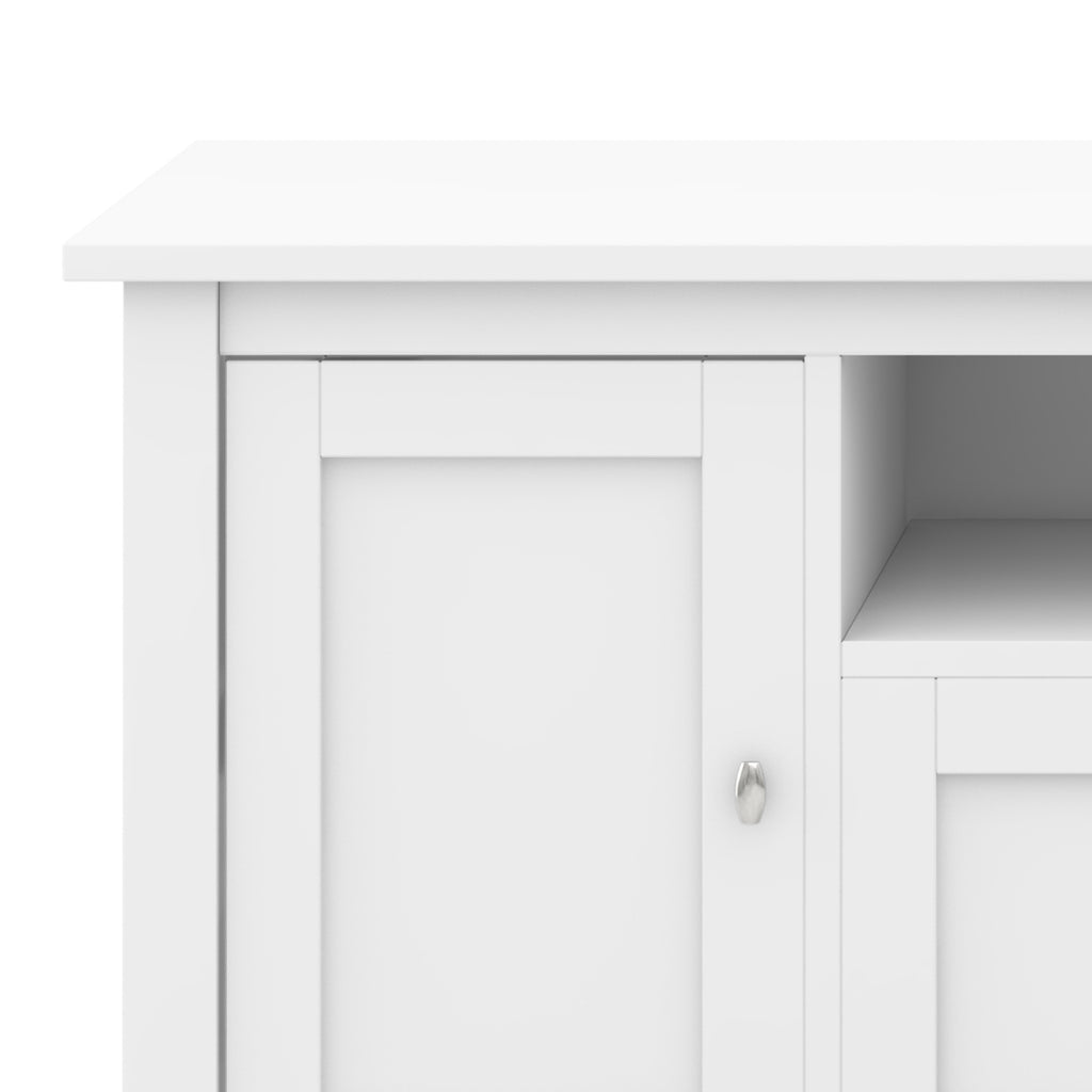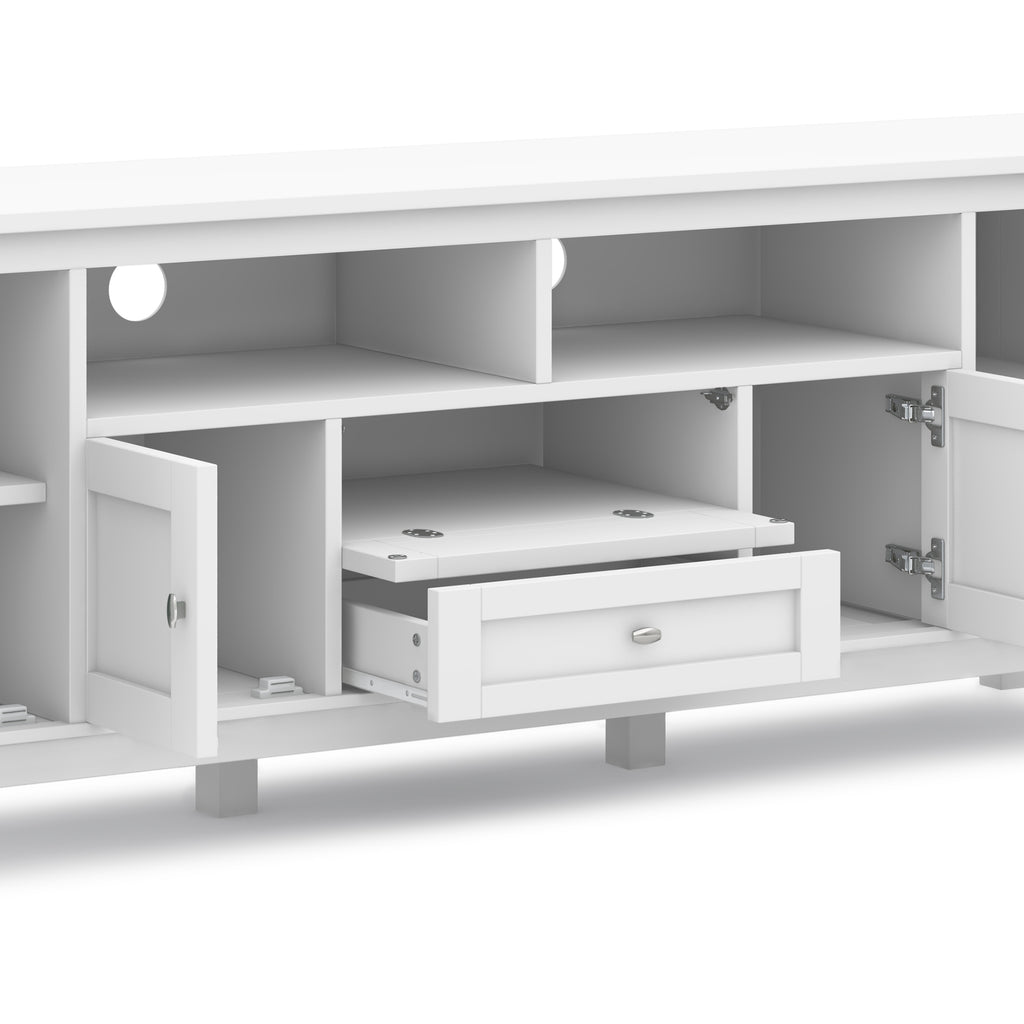 - Extra wide TV Stand is perfect for TVs up to 80 inches, includes cord management cut-outs for easy installation of TV and media components.